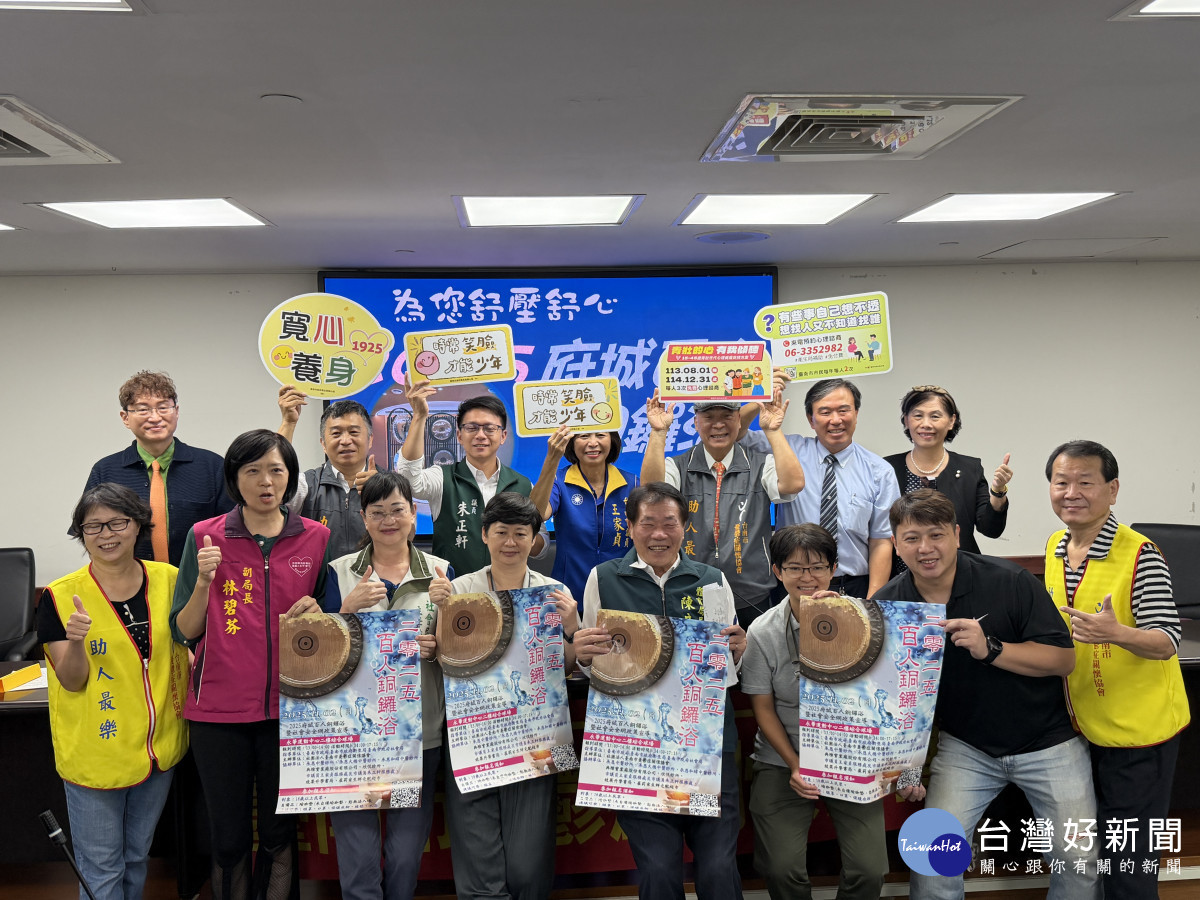 為推廣身⼼靈健康與⼼理照護,台南市憂鬱症關懷協會與台南市政府將於11⽉2⽇下午2點至5點半,在台南市永華運動中⼼⼆樓綜合活動中⼼(綜合球場)舉辦⼤型公益活動——「百⼈銅鑼浴,放鬆享受⾳波療癒」。活動邀請市民共同體驗⾳波共振的深層放鬆⼒量,釋放壓⼒,找回內在平衡。
