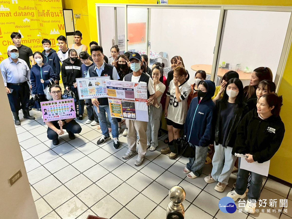 蘆竹分局針對人力仲介公司外籍移工,進行「防詐、防治人口販運及交通安全」宣導活動。