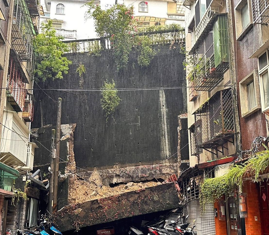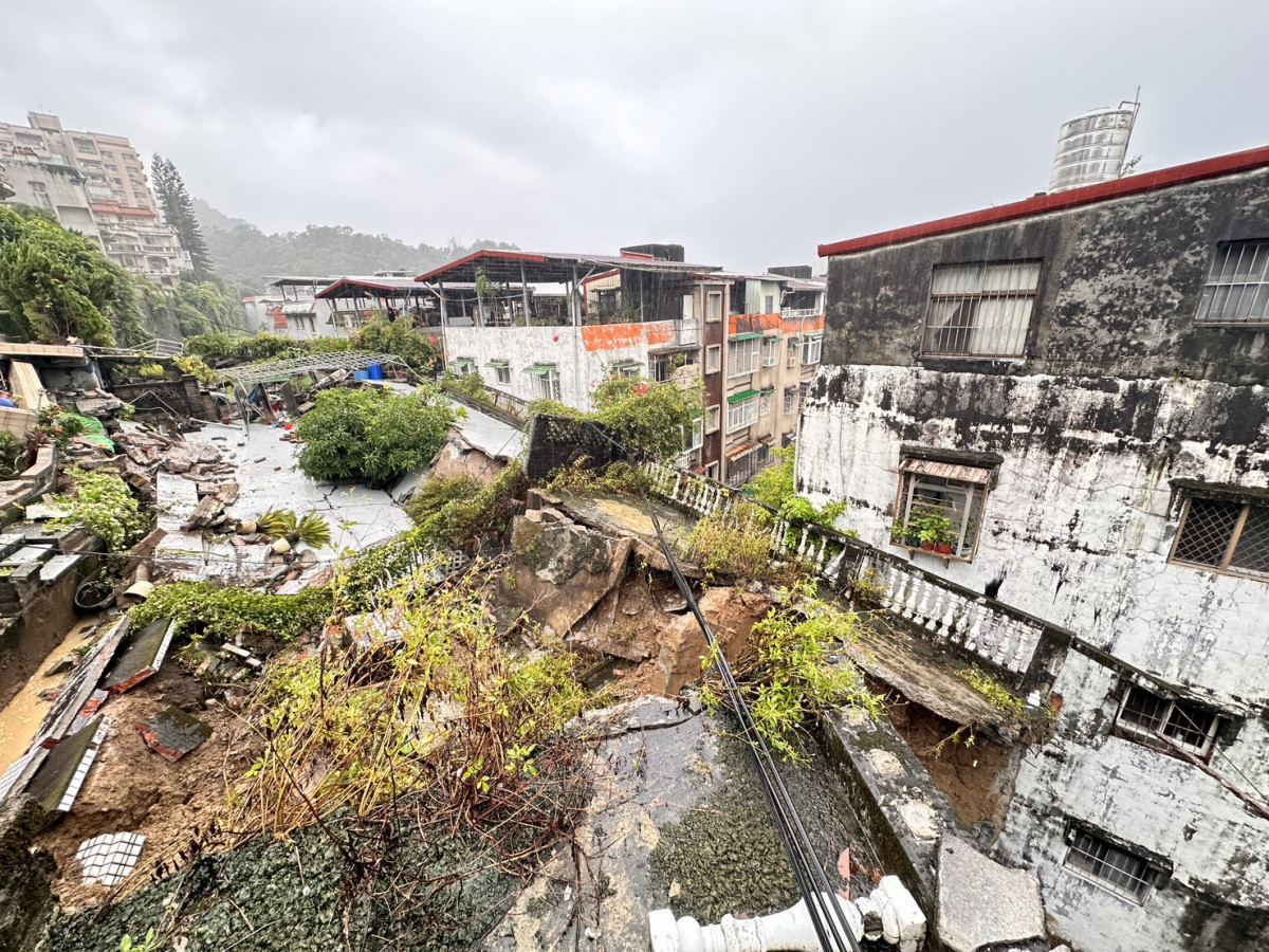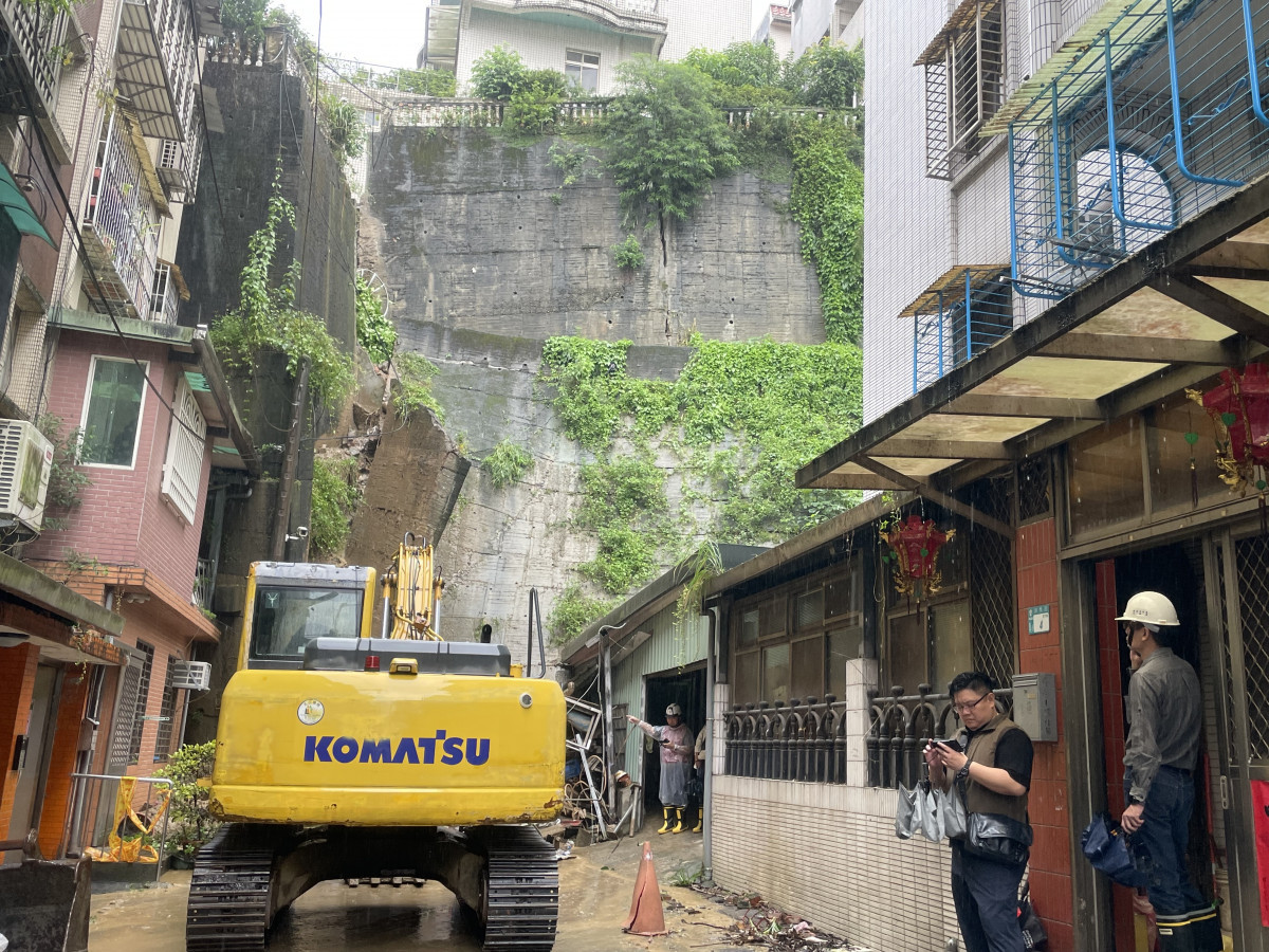 新店社區擋土牆坍塌 新北工務局調派人員搶災加裝監測儀器