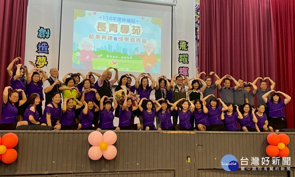 外埔區長青學苑於25日上午,在臺中市立外埔國民中學宏德館舉辦「114年度結業典禮暨成果發表會」,學員由家人陪同參與十分踴躍,致現場氣氛非常熱鬧溫馨。活動見證一年來豐碩的學習成果與樂齡族群的活力風采。並由社會局專委吳文楦代表盧秀燕市長及社會局廖靜芝局長出席,頒發結業證書予今年度完成學業學員代表及肯定老師在推動長青學苑上的付出與貢獻,給予大家關懷與勉勵。