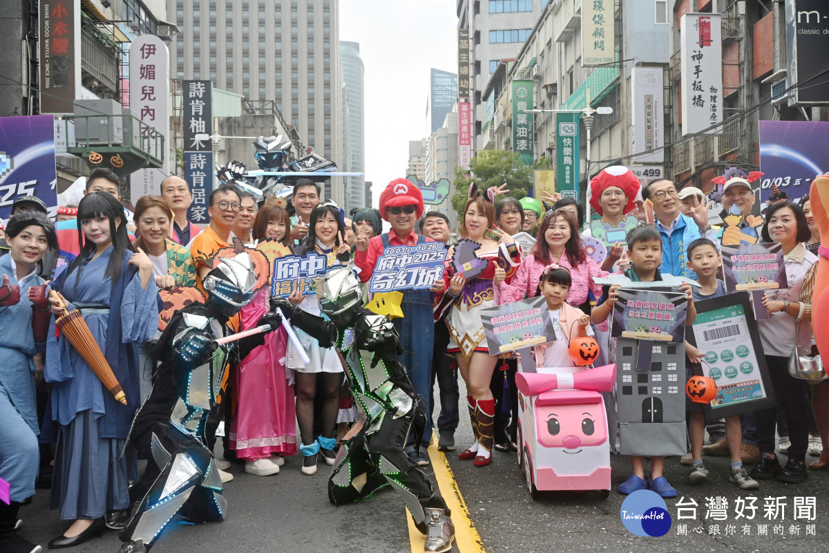 2025府中奇幻城壓軸活動「府中搞什麼鬼」今(25)日熱鬧登場,吸引大批民眾變裝共襄盛舉。市長侯友宜化身為瑪利歐,帶領大小朋友一同登入電玩奇幻世界,展開萬聖節限定冒險。活動包含萬聖踩街遊行、變裝比賽、實境解謎、集章任務、討糖活動、搞怪市集及舞台表演等豐富內容。