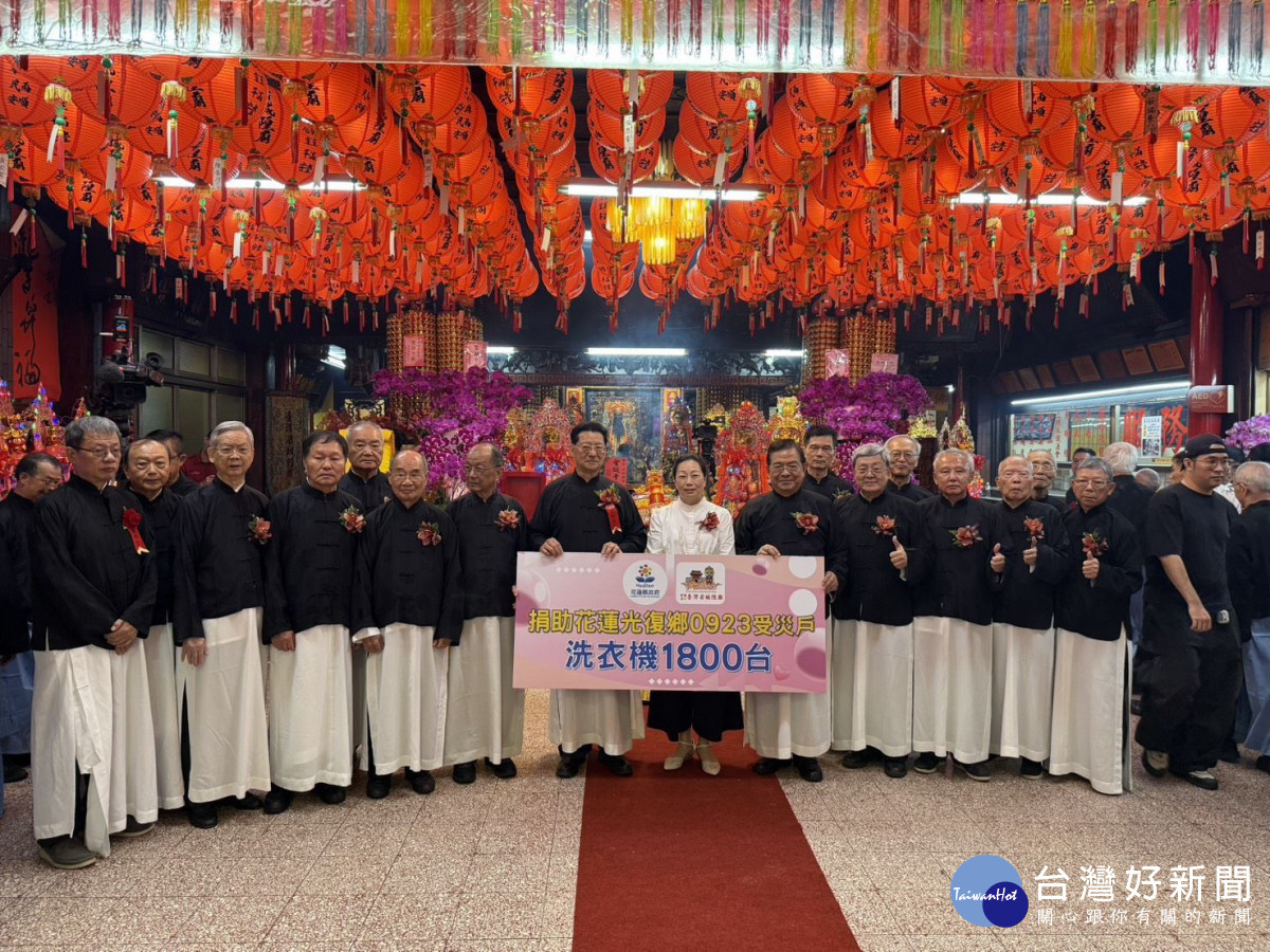 財團法人台北市台灣省城隍廟25日舉行恭祝省城隍爺聖誕啟建(乙巳年)秋季祈安植福禮斗法會,並於法會中以實際行動關懷災區,捐贈1,800台洗衣機予光復鄉馬太鞍溪堰塞湖災害受災民眾。捐贈儀式由花蓮縣長徐榛蔚代表受贈,向台灣省城隍廟董事長蕭中川及全體信眾表達誠摯感謝。