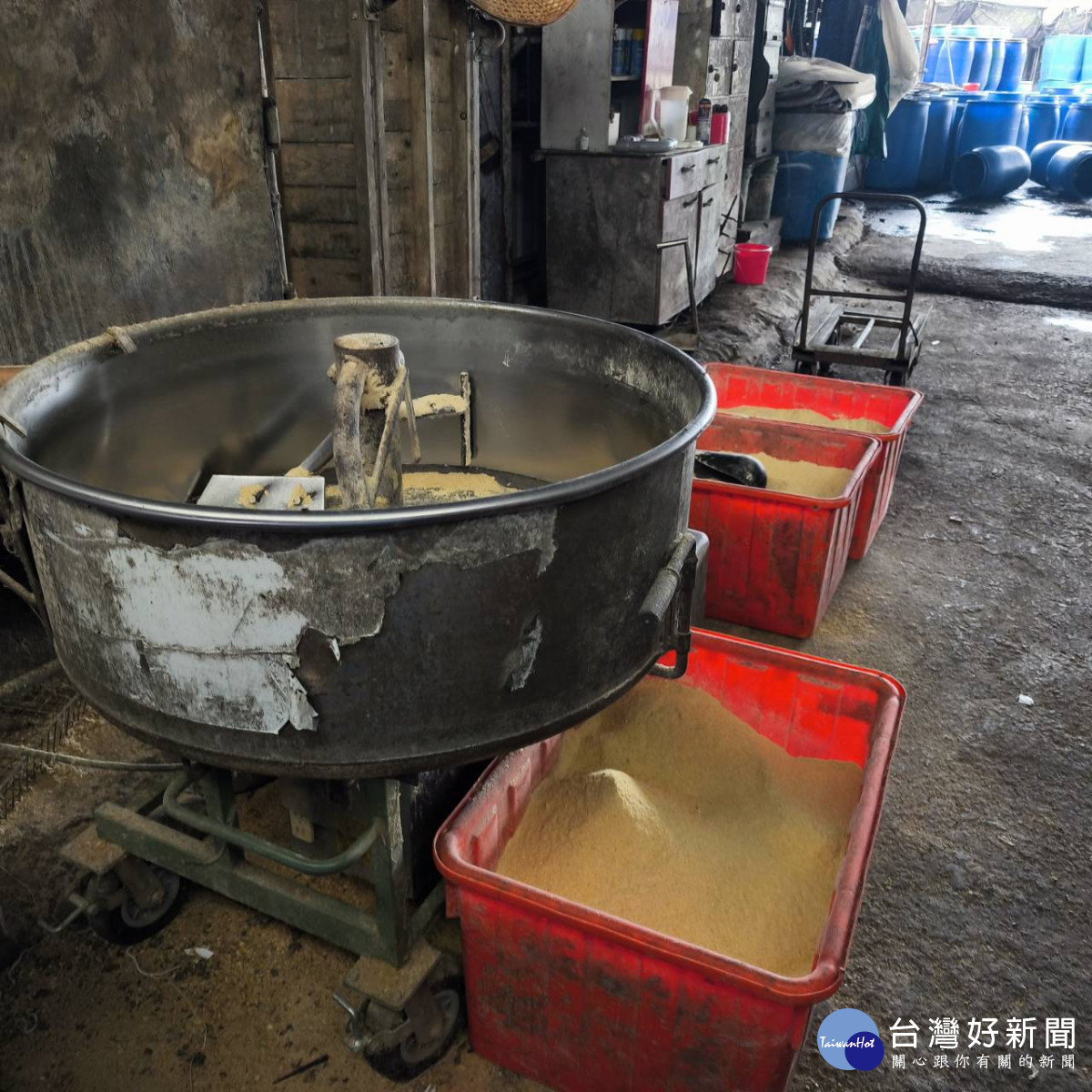 廚餘養豬場改用植物性廢渣養豬。