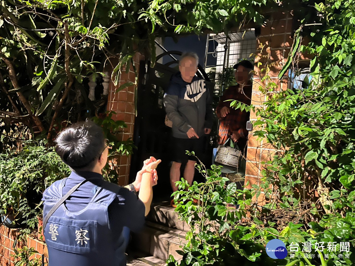 草湳派出所警員吳崇亘與史譯文於29日2時許抵達現場後,發現該名老婦拄著拐杖、步履緩慢面露倦容,疑似已在外徘徊多時。經上前關懷與詢問,老婦表示自己獨自外出購物,在回家途中突然忘記回家的路,所以一直在該處遊走。由於老婦無法清楚說出身分資料,員警仔細查看隨身物品,發現其攜帶家屬名片及證件,確認身分為蔡姓婦人(86歲),與兒子同住於楊梅區裕成路一帶。