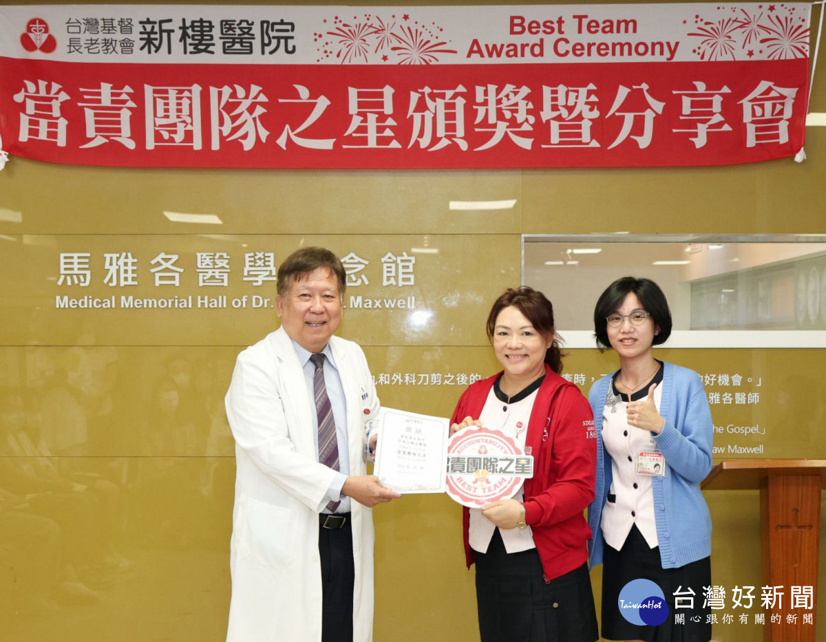 新樓醫院推動當責文化,舉辦「當責團隊之星頒獎暨分享會」激發同仁使命感,為持續優化醫療服務品質與團隊合作效率,29日盛大舉辦「推動當責文化 當責團隊頒獎暨分享會」。召集各醫護、醫技、行政單位代表,透過精彩的案例分享與交流,進一步凝聚全體同仁「以病人為中心」的當責精神,共同為醫院永續發展奠定堅實基礎。