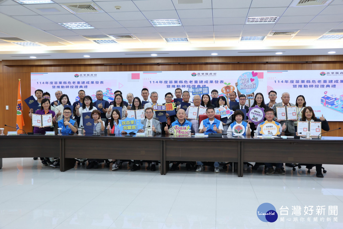 30日舉辦危老重建推動師授證典禮,由縣長鍾東錦頒發證書,象徵對新推動師的肯定以外,更是對苗栗縣未來居住安全與城市發展的承諾。工商處長詹彩蘋說明,今年培訓50人中有43人合格通過,後續擬建立危老推動平台,媒合需要協助的案例,讓更多社區參與危老重建,將苗栗打造成為幸福城市。