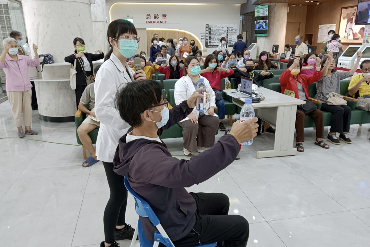活動現場由骨科陳志鎧醫師主講「骨鬆醫學堂」,以淺顯易懂的方式解讀骨密度報告,說明骨質疏鬆與日常生活的關聯,提醒民眾早期檢測與預防的重要性,獲得參與者熱烈回應。隨後,復健治療師蔡雅庭示範多項預防骨鬆的運動,教導民眾如何透過日常訓練維持肌肉力量與骨骼穩定,並鼓勵持之以恆。