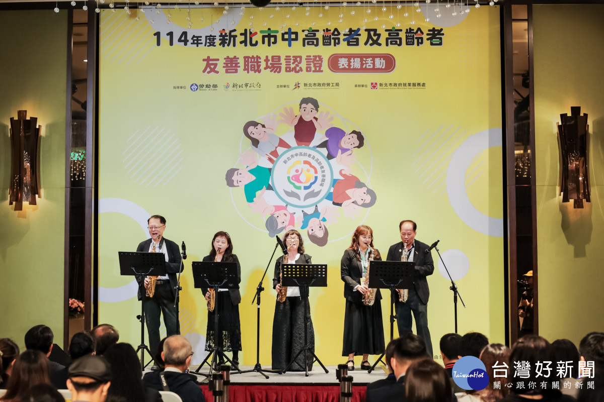 值得一提的是,開場表演特別邀請到「新北市P薩豐薩克斯風樂團」帶來悠美的音樂組曲,演出成員都已超過花甲之年,其中還有銀質獲證單位百泓事業董事長夫婦。樂團非常榮幸能在認證場合演出,其輕快動聽的旋律,更為現場增添熱鬧氛圍。