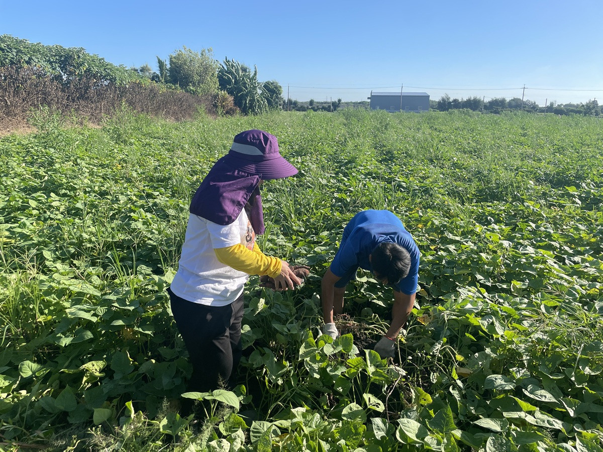 另外,彩紅與二林新住民關懷協會理事長陳立云熱情展示他們烘烤的香氣四溢地瓜外,還傳授我們烘烤地瓜的秘訣:「地瓜若要香甜綿密,要先放置一段時間『消水』,若用傳統大烤箱,建議以約攝氏230度烘烤約35分鐘,口感最為鬆軟香甜。」地瓜從種植到採收需時約4個半月至半年,1年1期的輪作節奏,使他們掌握土地的特性,也磨練出對時節的敏銳掌握。採收時,除了機械協助,也僱用工人,共同完成繁重的工作。