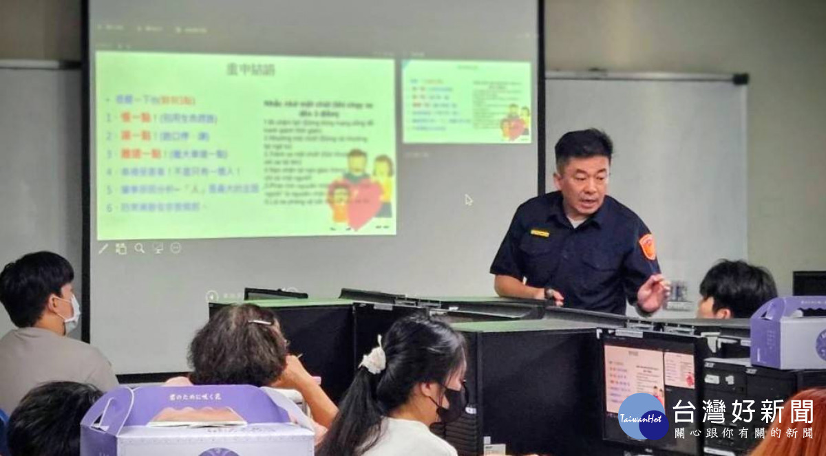 蘆竹分局深知外籍學生常因語言隔閡成為詐騙集團鎖定目標,特別前往開南大學,針對越南籍學生進行重點宣導,強化防詐免疫力, 針對「假投資」、「一頁式廣告詐騙」等常見手法,以中文及越南語雙語進行宣導,讓學生理解詐騙話術,提醒學生「天下沒有白吃的午餐」;拒當人頭戶, 宣導「銀行帳戶或銀行帳號不要借他人使用」的重要觀念,強調出借帳戶即是幫助犯罪,可能淪為詐騙集團的人頭戶,觸犯洗錢防制法等相關法律,保障學生在臺居留安全; 同時以雙語提醒學生務必遵守遵守在地法規,特別強調交通規則,例如無照駕駛將面臨的嚴重罰則,避免因不熟悉法規而誤觸法網。