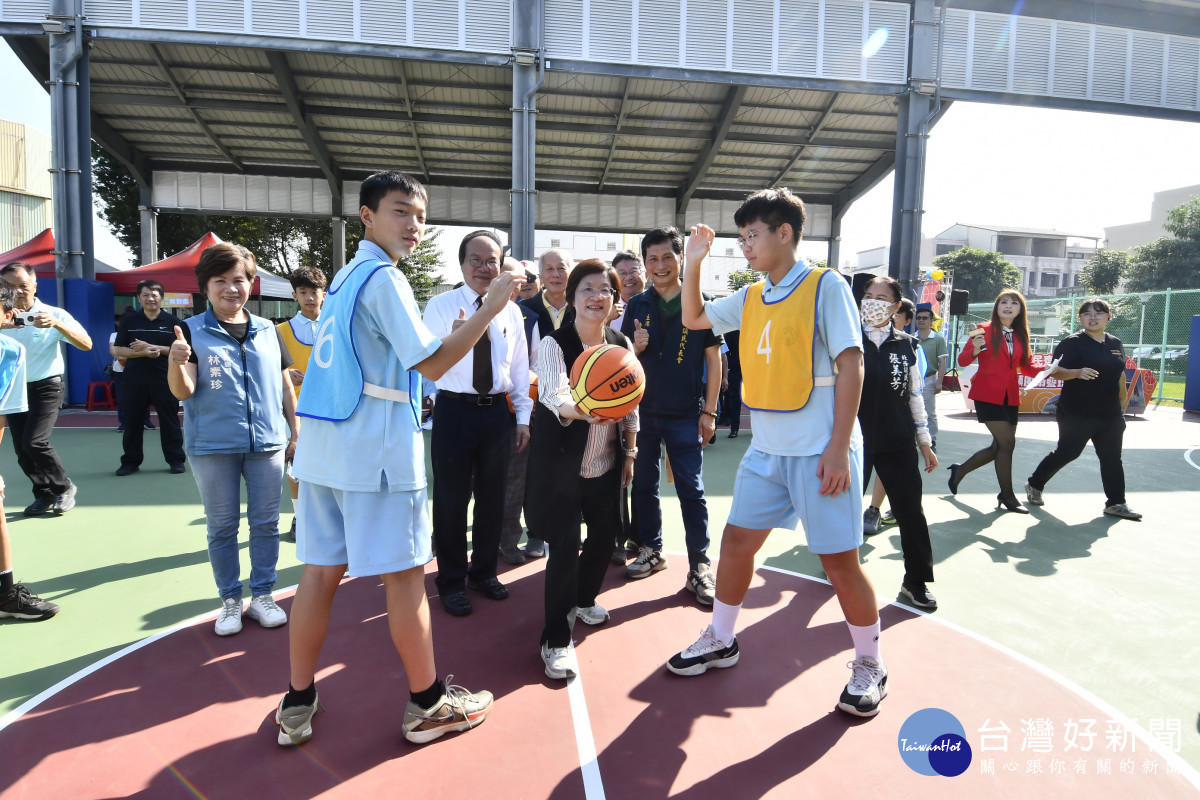 王惠美表示,北斗是彰化地區發展的重要城鎮,人口集中、學校密集、社區活動熱絡,對運動場地需求殷切。縣府秉持「運動不分城鄉、健康人人共享」理念,補助150萬元改善思恩公園籃球場,並與鎮公所攜手投入1,800萬元,興建風雨籃球場與戶外球場各一座,其中縣府與公所各自負擔900萬元,同時增設停車空間與休憩設施,提供鄉親更舒適的運動環境。