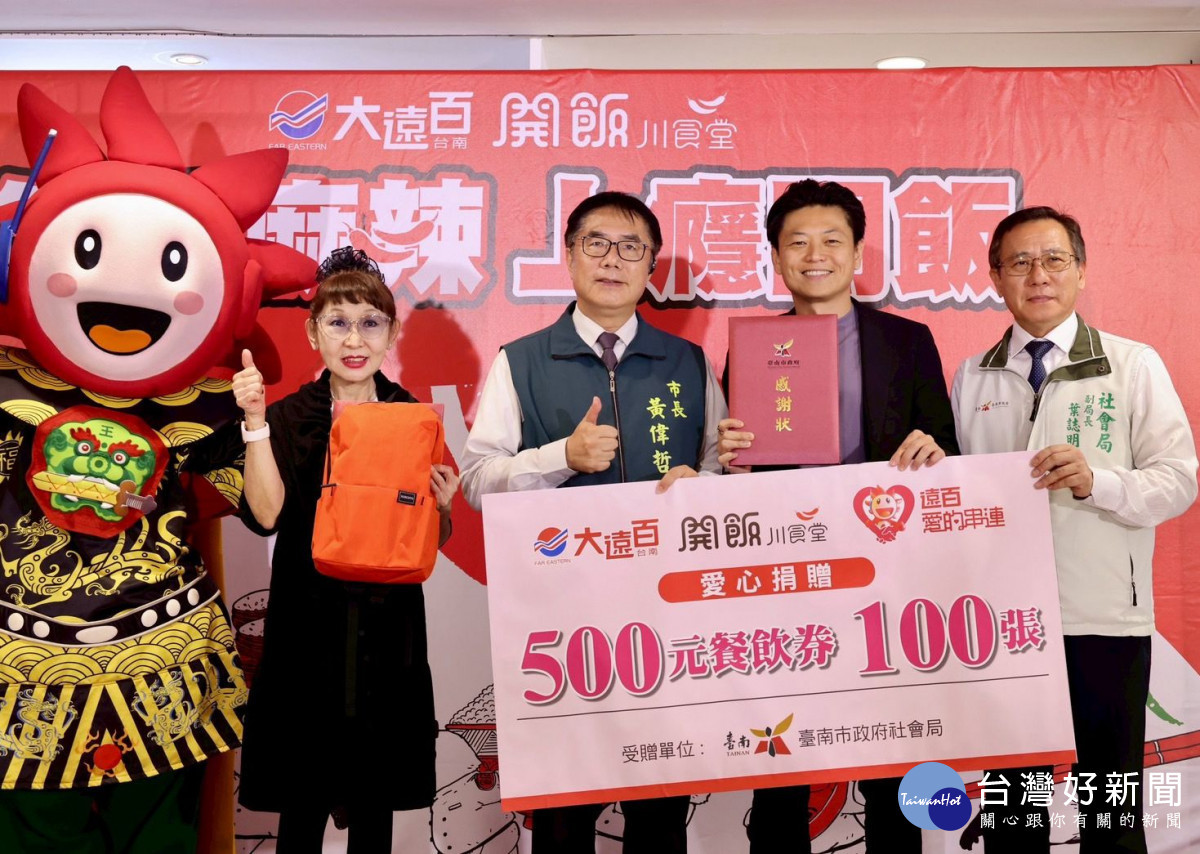 遠東百貨秉持「取之於社會,用之於社會」的精神,經常舉辦愛心募資募款等公益活動來關懷社會,開幕當天由遠東百貨徐雪芳總經理贈送30個實用後背包給身心障礙小朋友,饗賓餐旅集團陳毅航總經理也招待30名身心障礙者享用午餐外,再捐贈500元餐券100張供社會局服務中的身心障礙者家庭使用,由黃偉哲市長代表受贈。