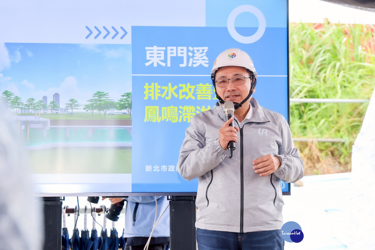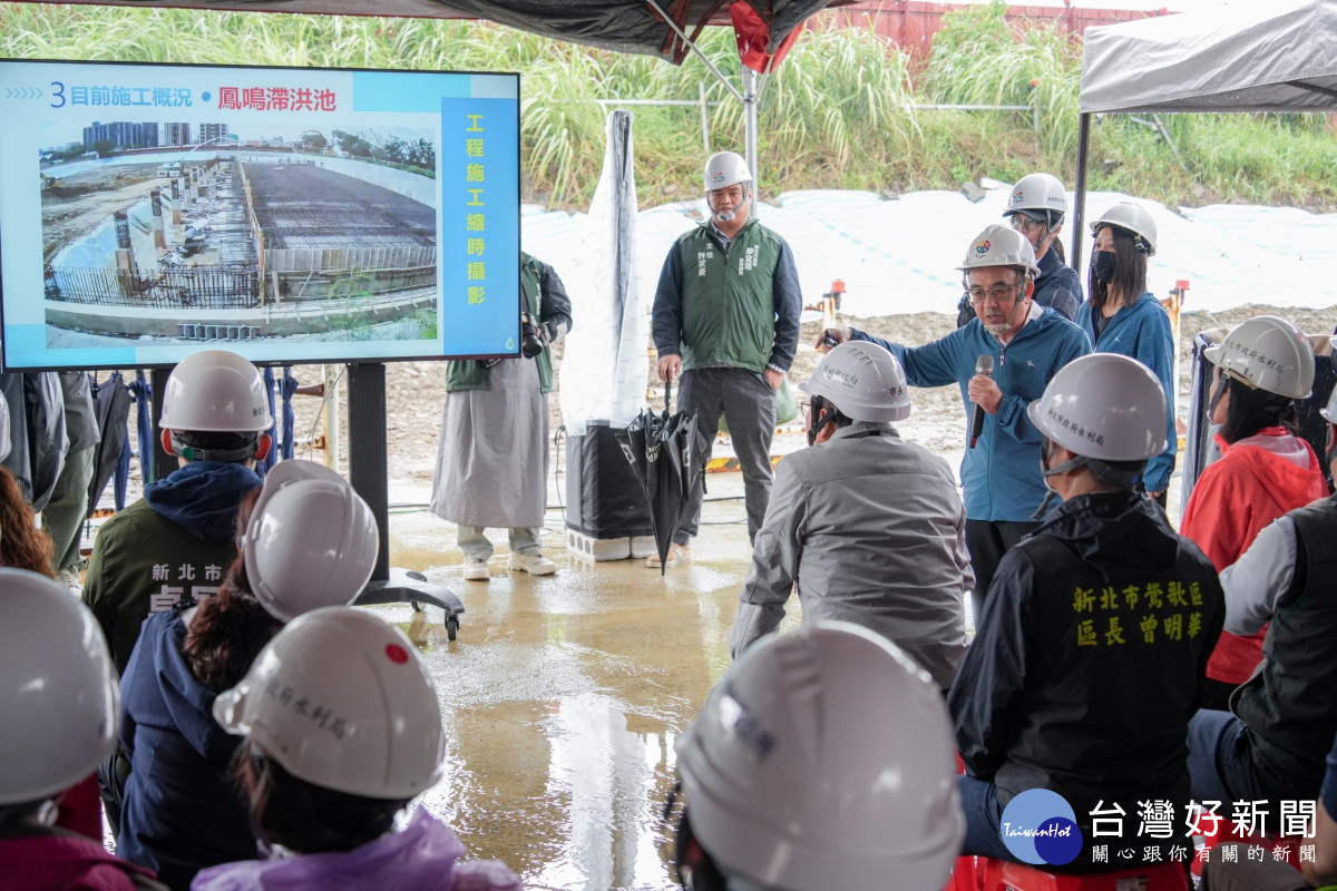 新北市長侯友宜今(18)日視察「東門溪排水改善暨鳳鳴滯洪池工程」,