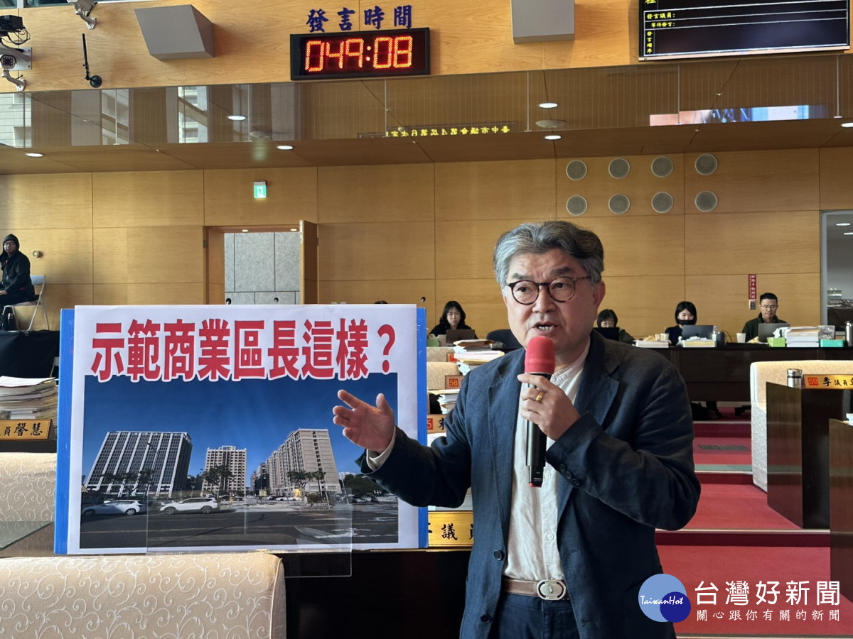 李中議員批東區干城原規劃為「示範商業區」,卻因政策錯誤,導致示範商業區幾乎沒有商業。