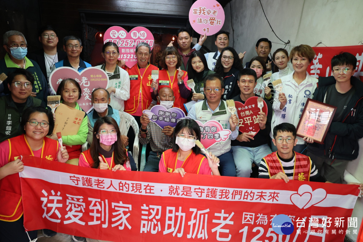 台南市政府社會局呂維胤機要秘書,以及支持服務經費的安平觀音亭林麗如委員、魚大俠冷凍食材本舖負責人、誠新實業有限公司負責人、崙博國際有限公司洪祥庭經理、臺南市消防工程器材商業同業公會唐志浩理事長、善士黃秀芬,一同見證兩位阿公的「歡喜入厝」。