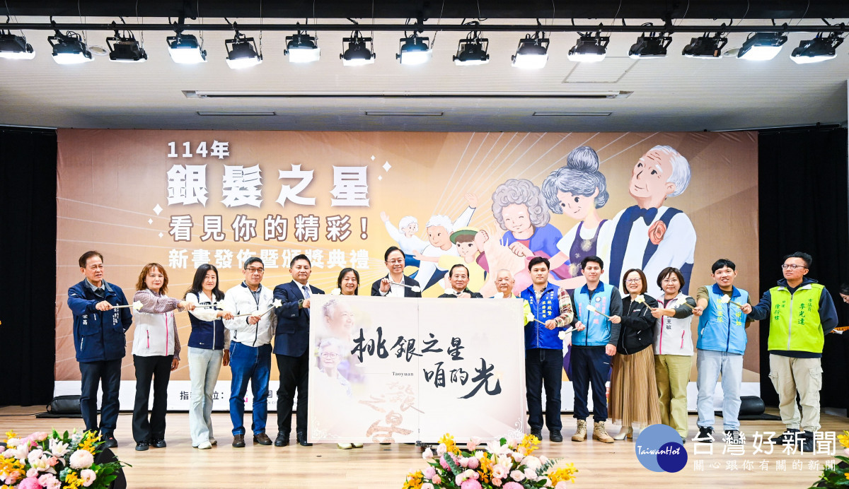 桃園市長張善政28日下午於市府綜合會議廳,出席「114年銀髮之星新書發佈暨頒獎典禮」,表揚入選的10位傑出長者與16位銀髮達人。張市長表示,每位長輩無論過去投身於哪個專業領域,走過6、70年人生歷程後,所累積的大半輩子智慧與故事,非常值得後輩去深入了解。本次出版《桃銀之星 咱的光》一書十分珍貴,這不僅是長者個人人生經歷的紀錄,更呈現社會發展的重要歷程,也讓親友得以從新視角重新認識長輩的人生故事與成就。