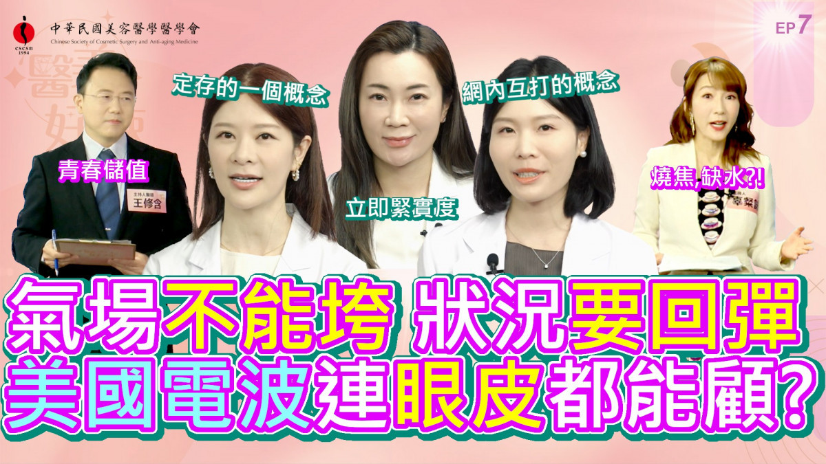 醫療衛教節目《嘿 醫美好辣》第二季第七集登場!本集主題圍繞「美國電波」,由主持人辜粲詠主播與皮膚科王修含醫師搭檔主持,邀請三位重量級醫師有三豐診所盧采葳、已研美學診所周邦宜、初樂極緻美學鄭雅瑜,共同破解「青春儲值」的美麗科學。