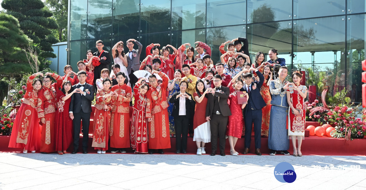 立委謝衣鳳到場向新人致賀,祝福永結同心。成美文化園執行長薛樂山則以園內象徵長青的松樹寓意新人婚姻長久、幸福美滿。整場活動在滿滿祝福中圓滿落幕。