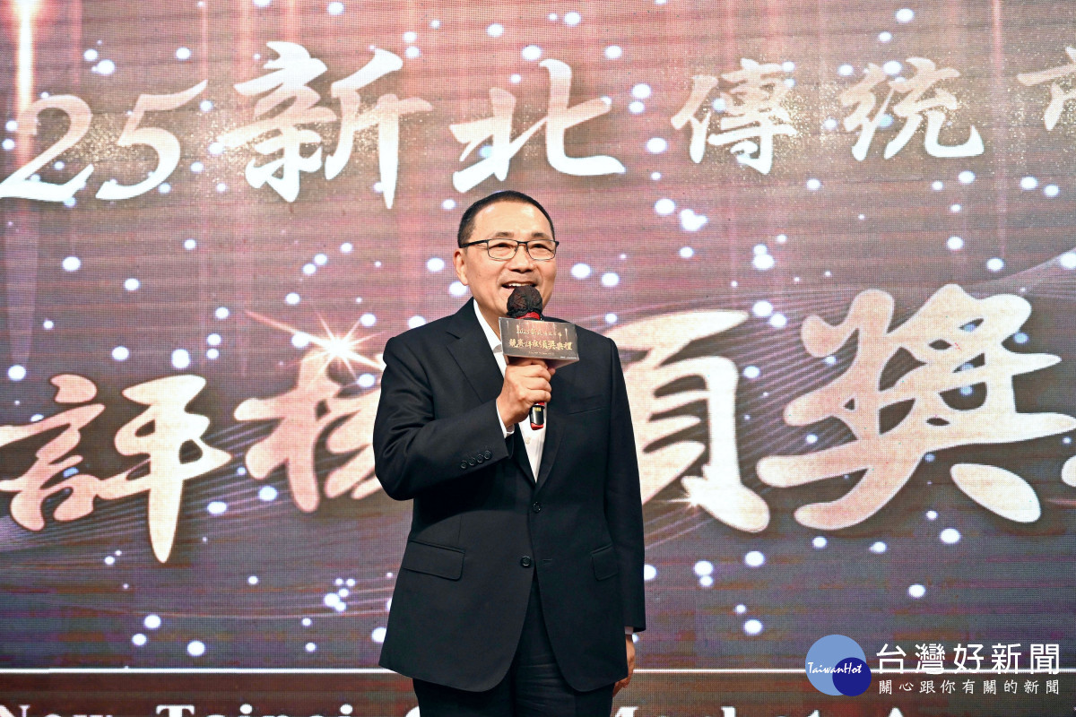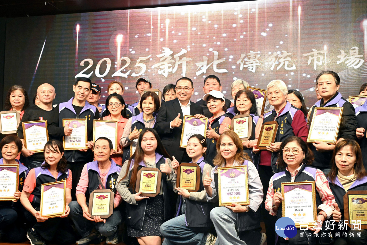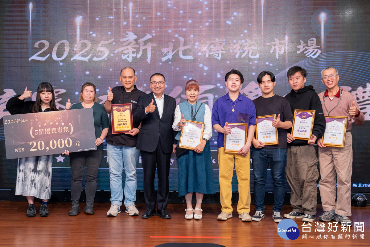 「2025臺灣五星集~優良市集暨樂活名攤評核計畫」成果揭曉,新北市政府市場處今(1)日舉行「2025新北市傳統市場競賽評核頒獎典禮」,邀集獲獎市場與名攤代表齊聚一堂交流經驗,並由侯友宜市長親自頒獎鼓勵,共同期盼市場未來更加美好