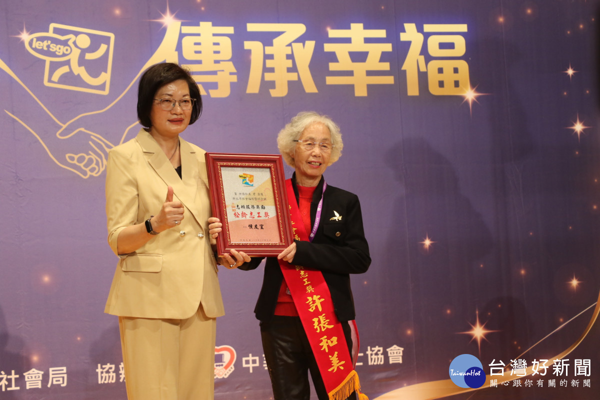 金山區的許張和美榮獲松齡志工獎,高齡84歲,在她55歲時因照顧癌末先生,同步被診斷出胃癌第一期,經手術治療後康復。這段與病魔搏鬥的經歷,讓她深刻體會生命的可貴,立志回饋社會。除擔任公所志工外,她亦參與學校、醫院、社區、宮廟及長青會等志工服務。她還登山、旅遊,充分展現樂齡人生。她鼓勵大家當志工,快樂過好每一天。