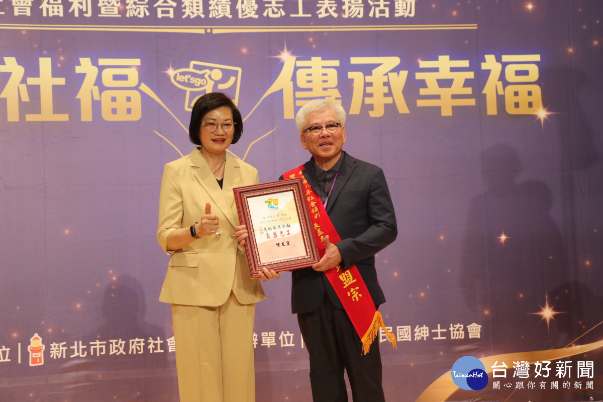 新北市社會局今(3)日於6樓大禮堂表揚社會福利類暨綜合類績優志工,包含21位65歲以上松齡志工、25位長益志工及52位福心志工。社會局長李美珍感謝所有志工夥伴長期的投入與付出,讓新北成為宜居、友善的幸福城市。