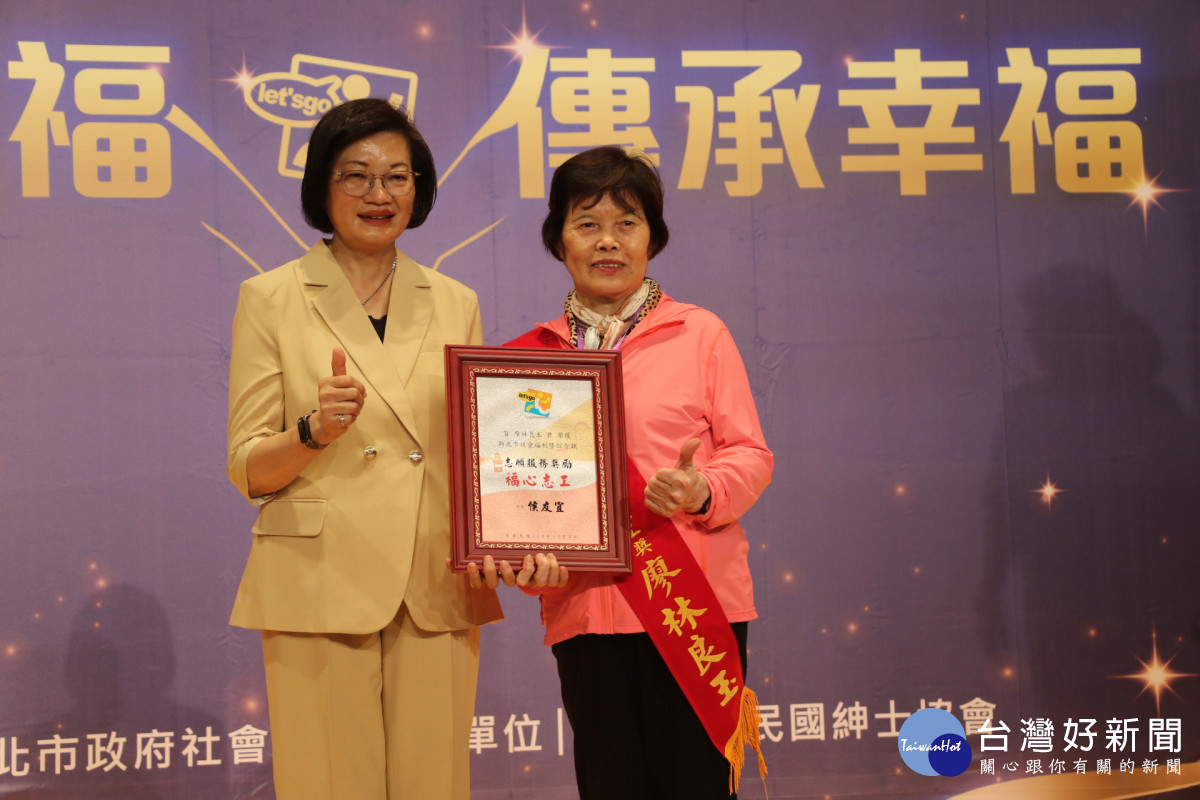 榮獲福心志工獎的廖林良玉,他曾擔任新店下城里長5屆20年,卸任後她揪團每周二載幾位志工一起到位於屈尺的衛生福利部北區老人之家服務,並擔任志工隊長。她看見長輩肌耐力不足與肌少症,積極協助健康促進活動,甚至手作素食佳餚,讓長輩享用。
