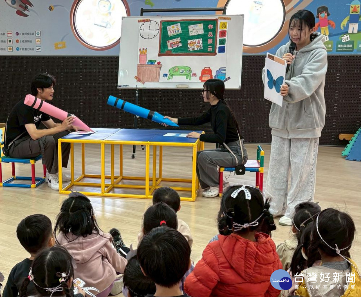 嶺東科大幼保系學生以戲劇、故事、音樂律動與創意教具,讓幼兒體驗多元文化。(圖/嶺東科技大學)