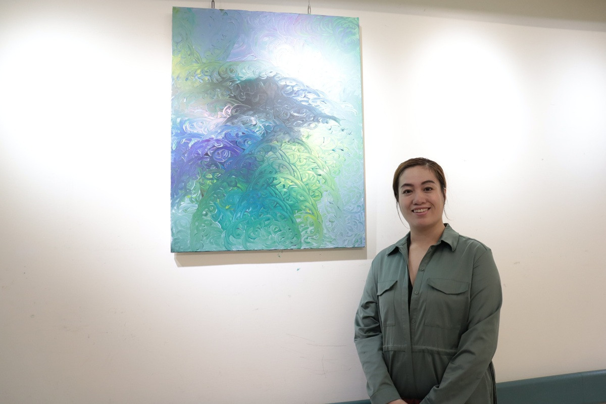 陳怡君的30多幅作品正在彰化醫院藝術走廊展出,獨特的風格讓人不免流連再三,壓克力畫如油畫般立體,線條展現出自由的韻味。她對此表示,壓克力顏料很快就定型,不易修改,她也不會去修改,創作隨心所欲,就像她自己破繭而出一樣,也希望觀眾能感受到其中蘊含的自由味道。