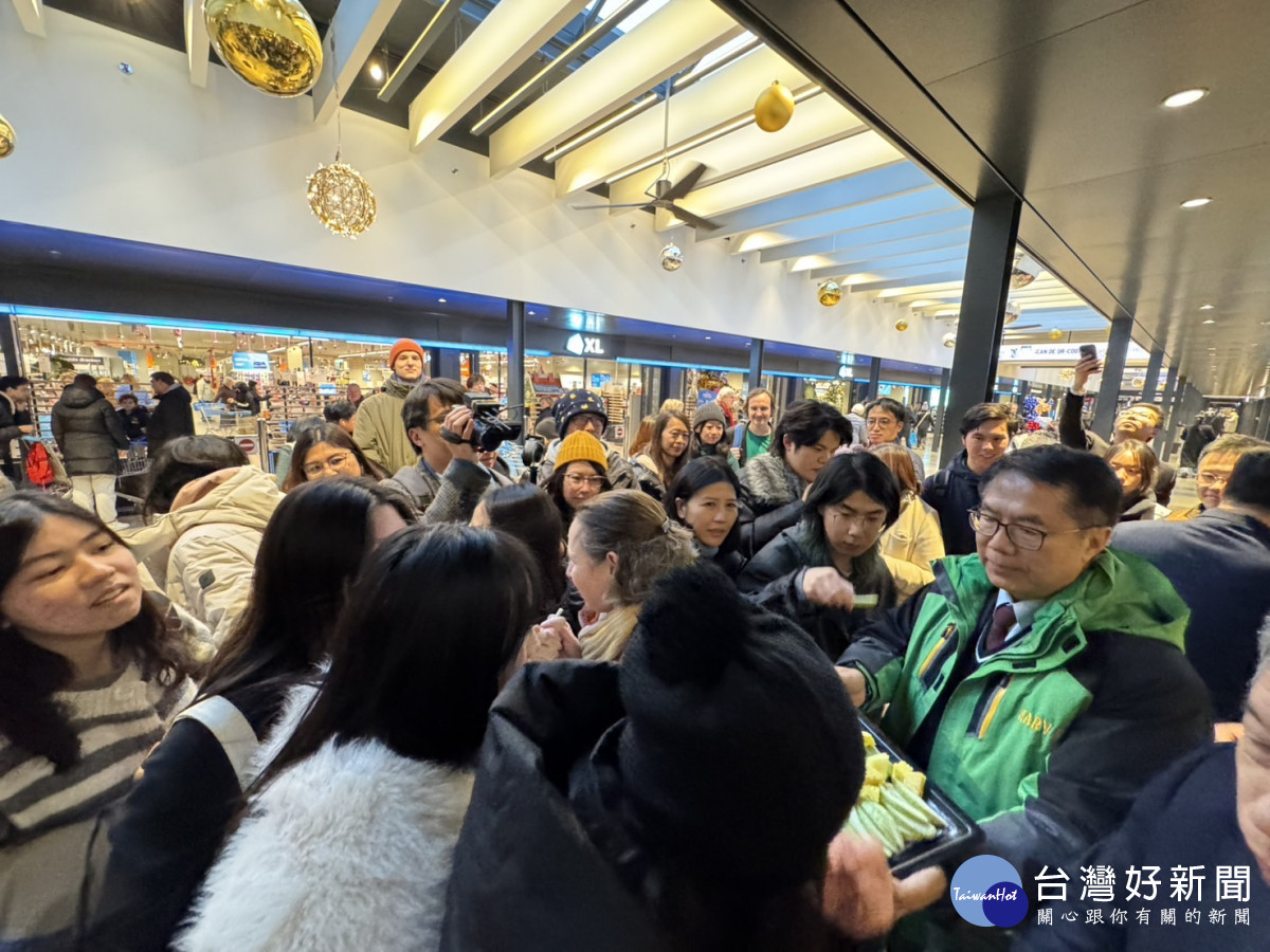 活動現場人潮滾滾,芭樂與鳳梨迅速秒殺銷售一空,許多旅歐台灣人更遠道而來支持家鄉的好滋味。台南的芭樂口感、甜度上乘,深受喜愛,鳳梨更延續去年銷售熱潮。