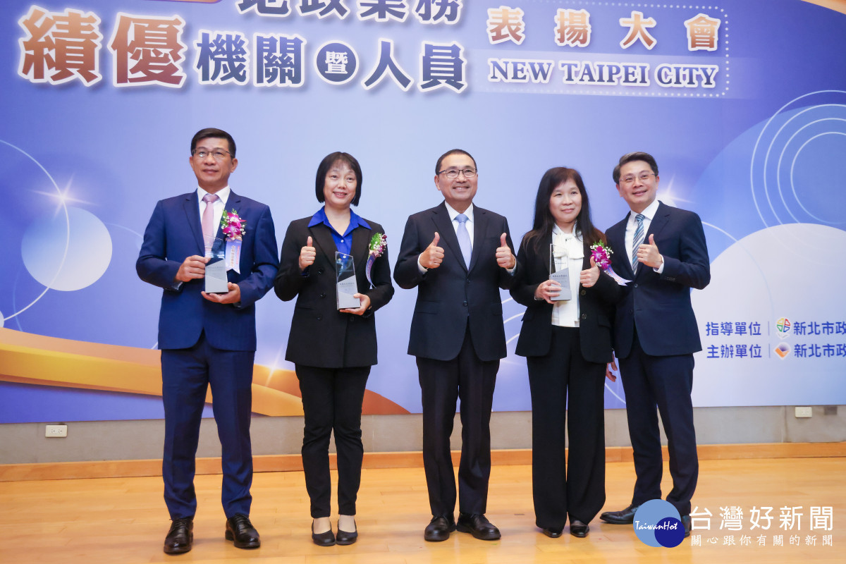 新北市政府今(11)日舉行114年度地政業務績優機關暨人員表揚大會,市長侯友宜親臨頒獎,感謝協助推動地政業務的地政士、不動產經紀人員、地政志工、績優人員、績優地所、公所。為強化不動產防詐,今年首次新增「績優防詐人員」獎項,表揚同仁們於防詐第一線的敏銳判斷與積極作為。