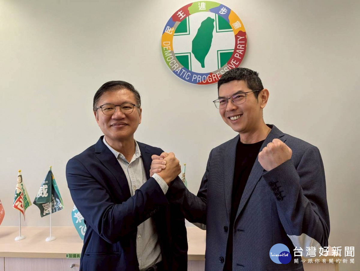 民進黨新舊任黨團總召交接王立任卸任由周永鴻(右)接棒