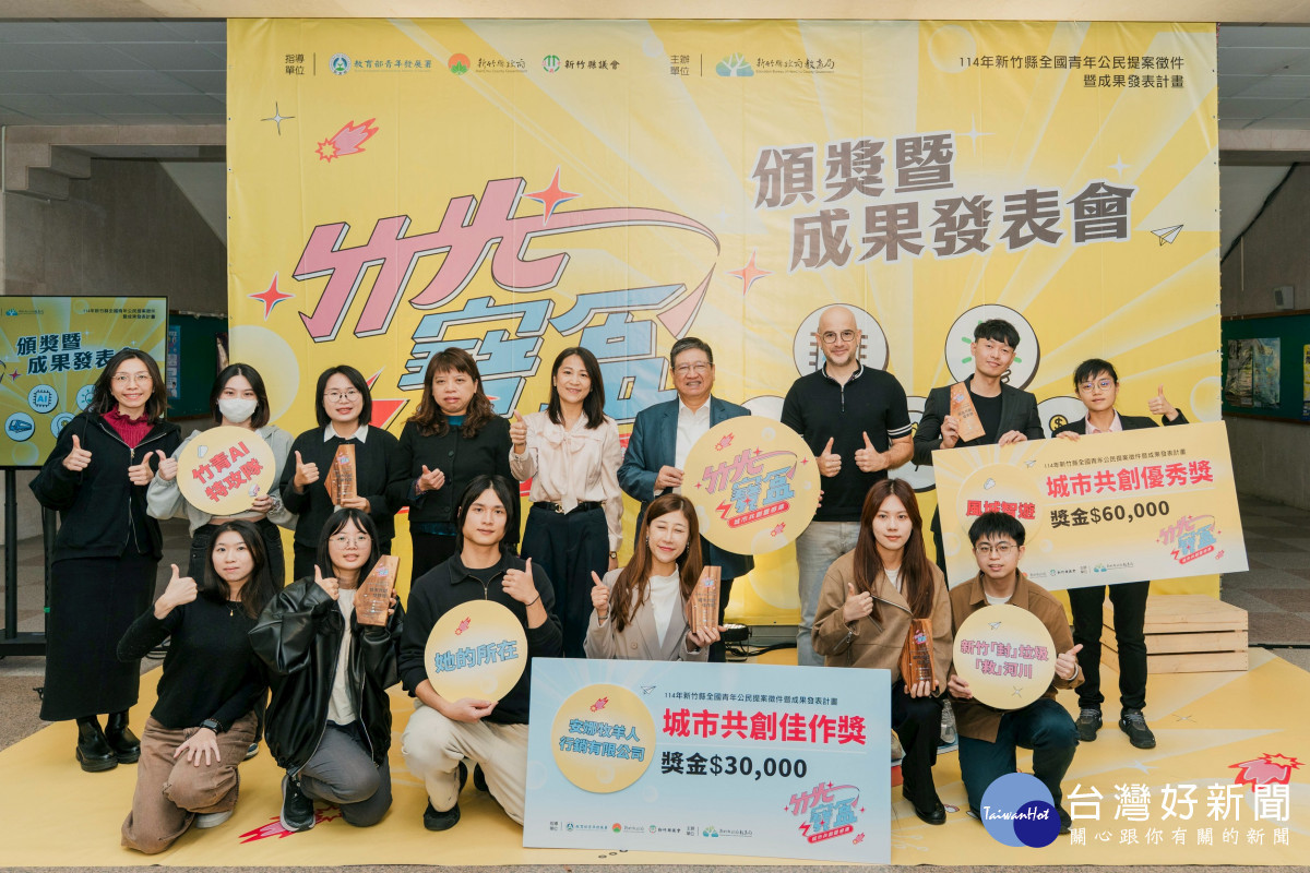 本次競賽由教育部青年發展署擔任指導單位,並以「公共參與培力」與「民主實踐」為主軸,共吸引全國計 23 組青年團隊報名,提案內容涵蓋環境永續、社會公益、都市發展等面向。經決選後,由【風城智遊】與【竹青AI特攻隊】獲得「城市共創優秀獎」,【新竹「封」垃圾 救「河川」】、【她的所在】與【安娜牧羊人行銷有限公司】獲得「城市共創佳作獎」,縣府並發出高達 21 萬元總獎金,勉勵青年展現跨領域創新與行動能力。