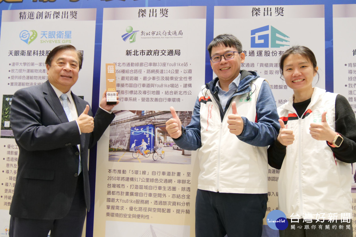 新北市交通局多年來積極打造低碳交通環境,從全面升級公共自行車系統,到建構全國首創的通勤綠廊,逐步實現兼具通勤、觀光與休閒的綠色交通網絡,榮獲第二屆「ESG交通運輸永續獎」傑出獎肯定。交通局長鍾鳴時指出,新北市YouBike公共自行車已全面升級2.0系統,今年3月恢復前30分鐘免費後更深受市民歡迎,截至今年11月底,全市租賃站突破1,500站,累計騎乘人次突破3億,已成為市民短程移動與生活交通的重要綠色交通工具。