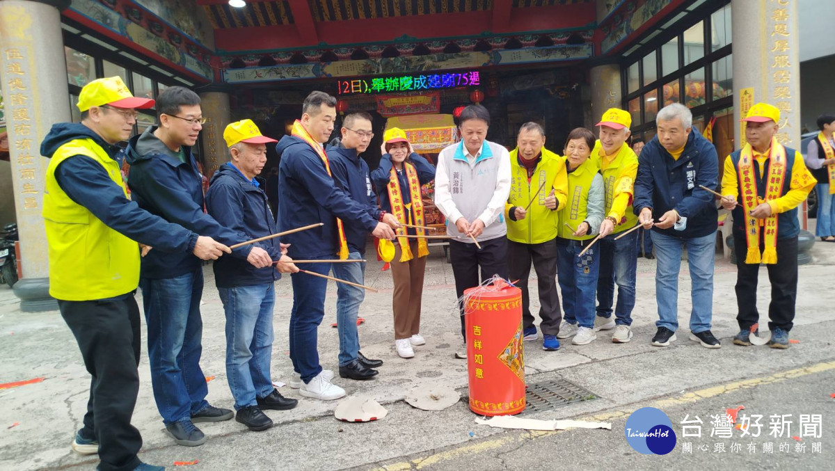 當天參與的除了政界人士,還有從雲林嫁入苦苓腳的林麗美,她是新竹市警察局民防大隊大隊長,事業有成,兒子王昌哲的事業更是不遑多讓,母子多年來積極回饋鄉里,此次平安醮出錢又出力、捐款榜首正是王昌哲的公司。北區各里里長一早也全員到齊,力挺七伍宮主委也是古賢里里長及北區里長聯誼會會長的王泰山,看到大家有行動力挺建醮活動,好心情全寫在臉上。