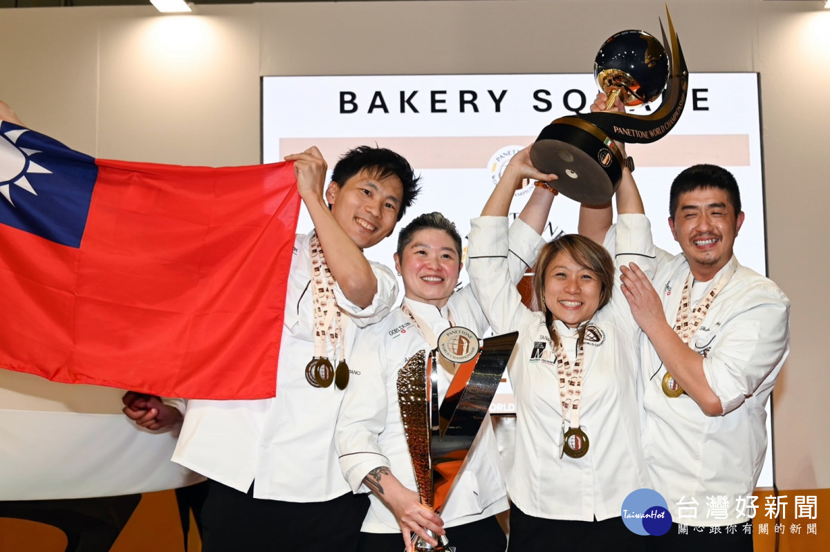 台灣隊今年奪得「2025世界盃聖誕麵包大賽」總冠軍作品及獎盃。(圖:蔡約群提供)