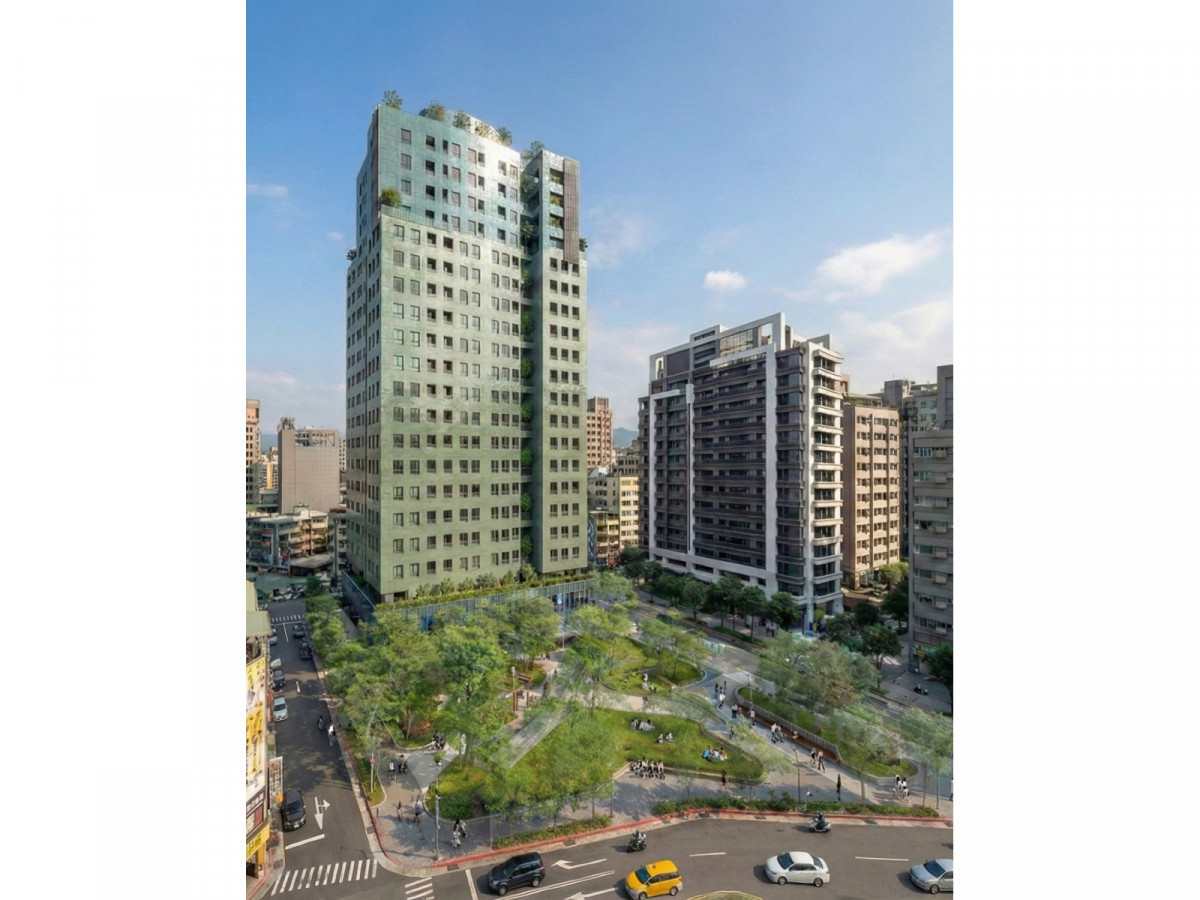 建築設計採「風車式」量體配置,順應風廊引導氣流,創造適當天際線,增加通風採光面積。露臺與屋頂平台將種植大量綠化植栽,落實節能減碳永續理念。