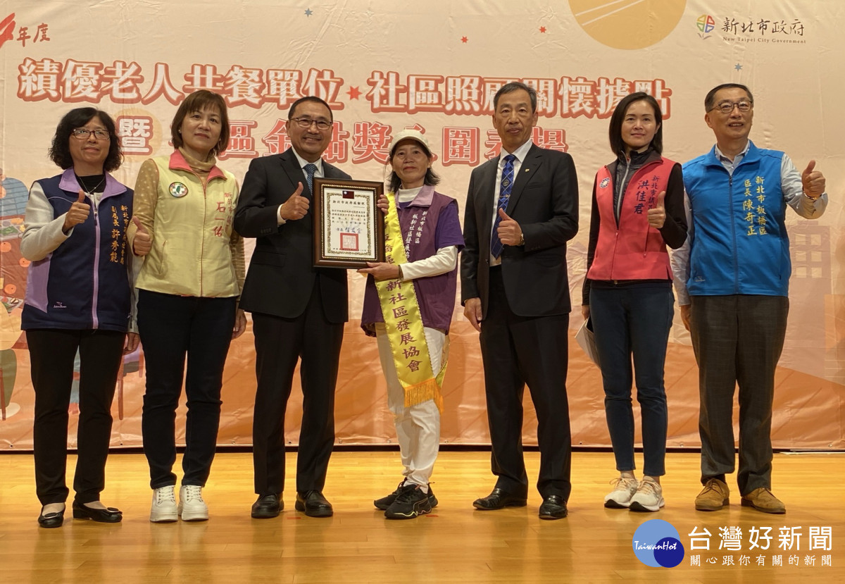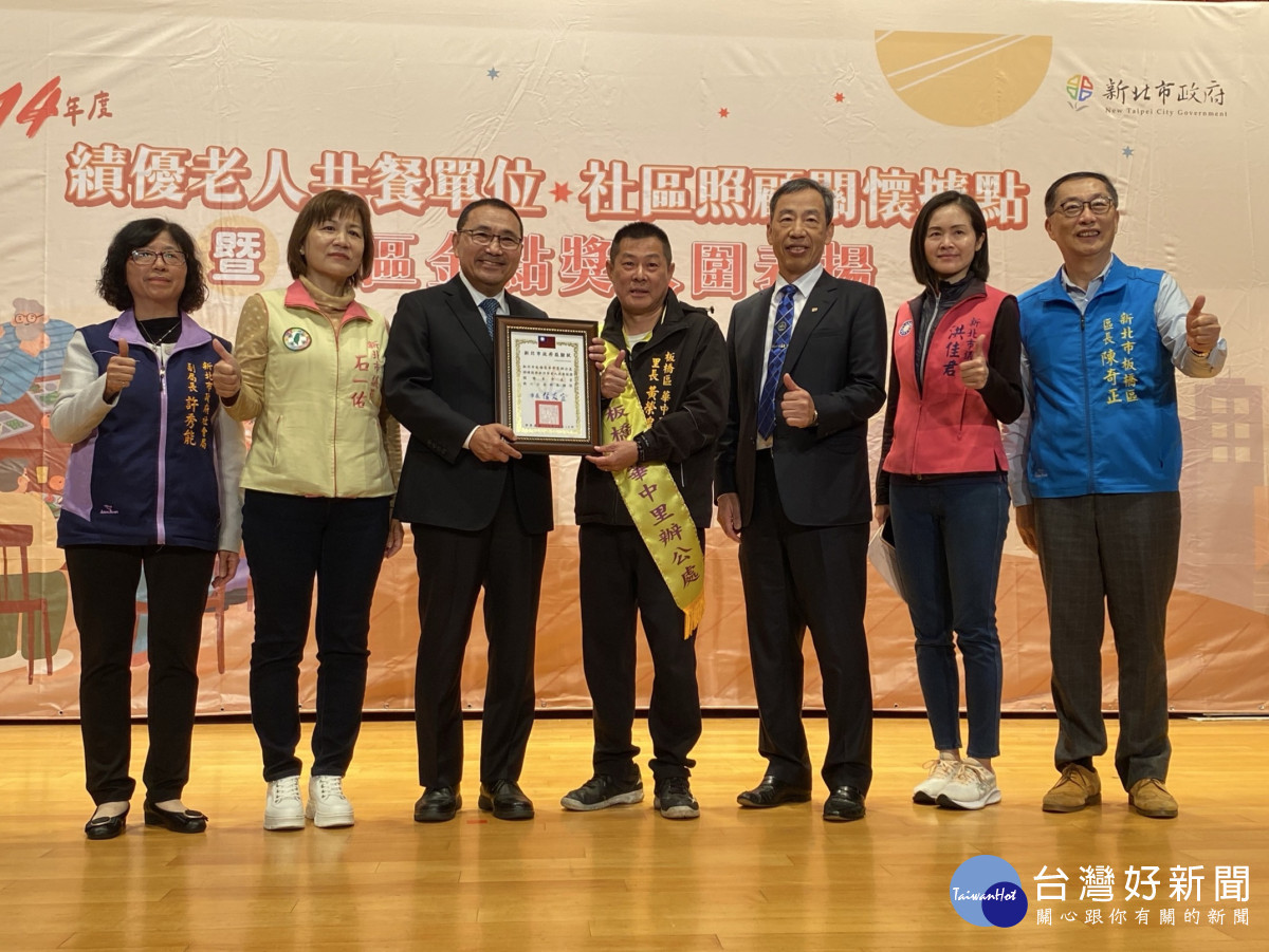 此外,新北市社會局表揚114年績優老人共餐單位,板橋區計有三民社區發展協會、幸福里辦公處、板新社區發展協會、華中里辦公處、新住民促進會、新埔商圈協會、福泰社區發展協會、親子服務協會、華江里辦公處等9個績優單位,侯友宜市長分別頒發感謝狀及獎勵金。