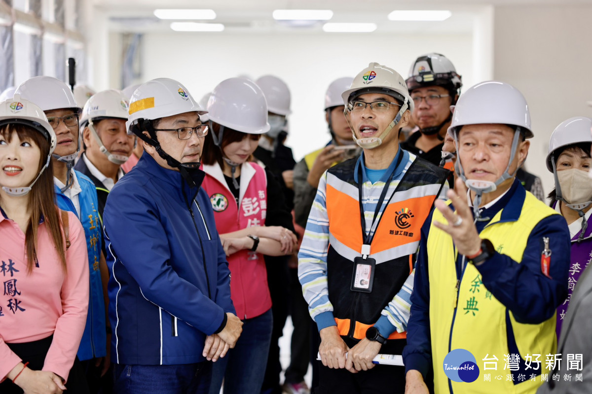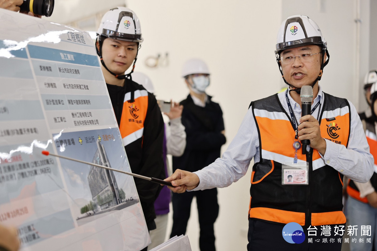 新北市長侯友宜今(23)日視察三重區玫瑰立體停車場工程進度,表示整體進度已達83.35%,較原訂時程提前,預計明年5月完工,將具備停車場、市民活動中心與派出所的三合一空間,不僅能紓解地方停車需求,並提供市民優質休閒場所與辦公環境。