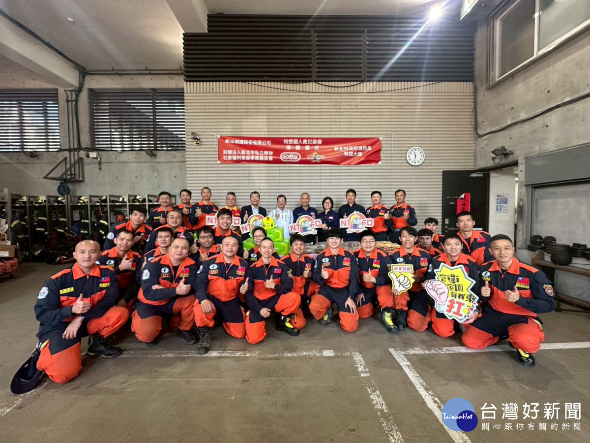新北市政府消防局今 (24)日於特搜大隊辦理「新光鋼鐵股份有限公司及財團法人新北市私立輝容社會福利慈善事業基金會聯合捐贈個人防護裝備典禮」,消防局長陳崇岳主持,此次捐贈70套個人防護裝備,將大幅提升特搜人員執行任務時的安全性與效能,也象徵民間力量與消防機關攜手守護城市安全的深厚情誼。