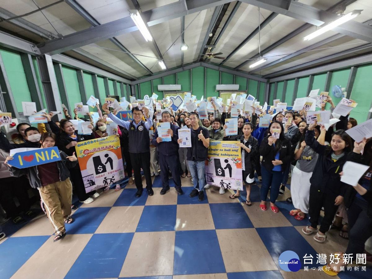 移民署臺中市第二服務站結合警方及人力仲介公司辦理移工權益及反詐騙宣導。