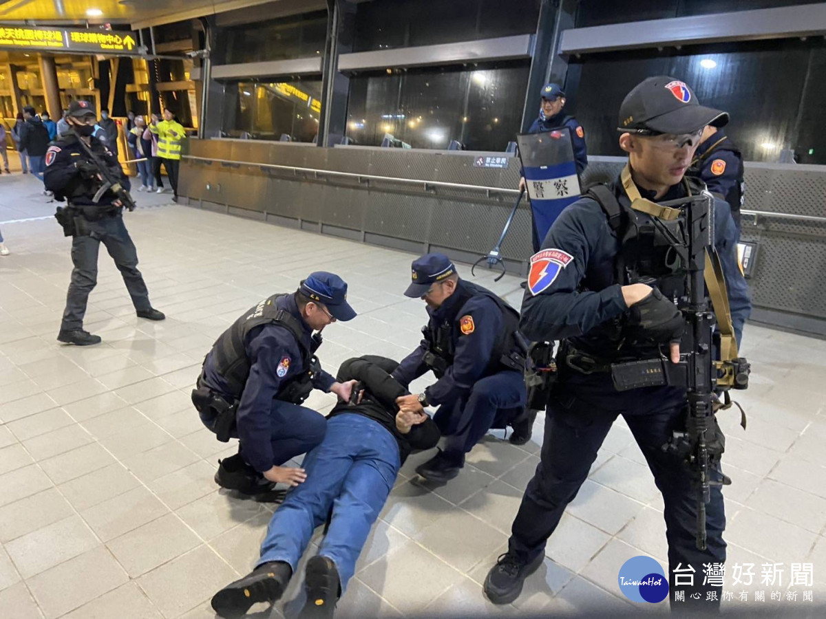 桃園市政府警察局捷運警察隊與桃園大眾捷運公司,在機場捷運 A19 桃園體育園區站聯合舉行「多重災害模擬演練」。