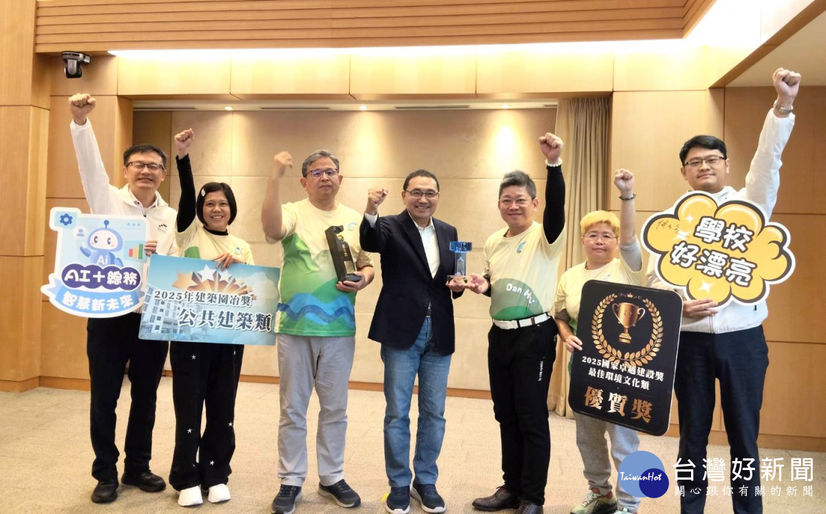 新北市淡海國小以前瞻校園設計與深具在地文化的建築美學脫穎而出,一舉榮獲「2025國家卓越建設獎-最佳環境文化類」,以及「建築園冶獎-公共建築類」兩項全國指標性大獎,成為全臺少見從文化共融、永續環境與智慧科技三大面向整合打造的教育建築代表。教育局今(31)日於市政會議獻獎分享榮耀。