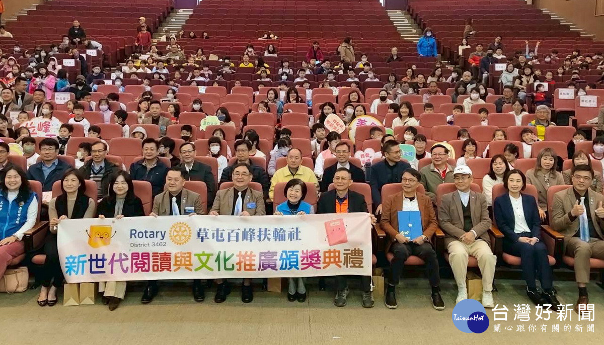 閱讀力即競爭力,愈來愈多企業支持學童閱讀,南投縣府指導、草屯百峰扶輪社主辦的「114新世代閱讀與文化推廣計畫」,6日上午在草屯商工國際會議廳舉行頒獎典禮,現場匯集南投縣內21所國小校長、獲獎師生及在地企業代表近300人參與。本屆計畫規模再創新高,計有超過5,000名學子響應,見到如此多學童參與令人欣慰,充分展現南投縣推動「素養導向、多元學習」的卓越成效。