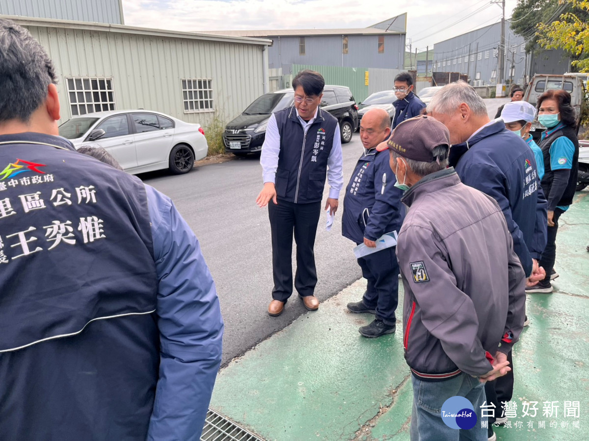 民政局偕同區長鄭正忠及西湖里長賴加彬等人視察大里區草堤路158巷