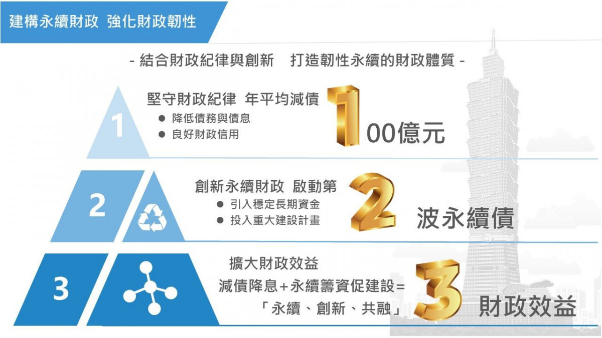面對國內外政經環境變化帶來的財政變數,台北市政府財政局表示,將持續積極致力於建構健全且具韌性的財政環境,提升財務資源運用效能,同時在順利推動各項市政建設之前提下,依公共債務法規定,達成加速減債目標。