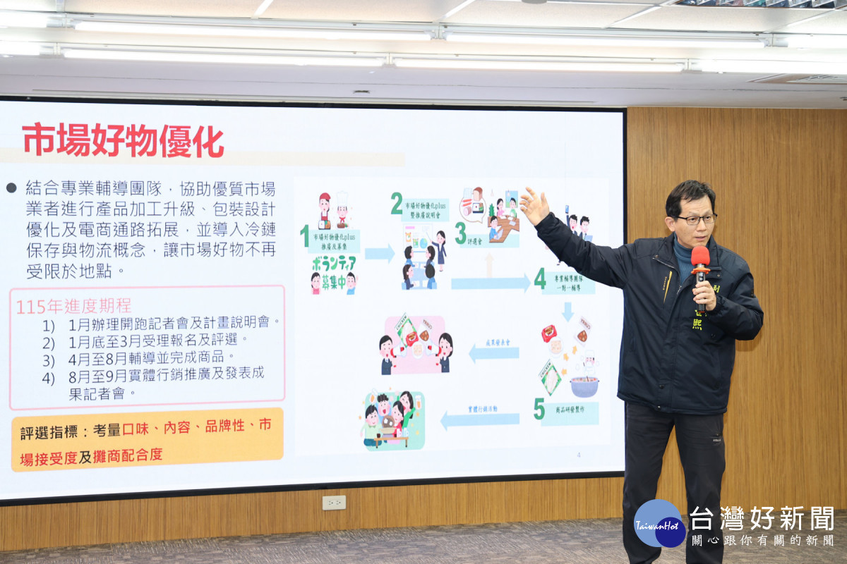 市場處表示,台南市有59個公有市場,市場好物優化是以長期輔導與系統性培力為核心的市場升級計畫,協助台南市場好物拓展多元通路、提升整體能見度。1月26日將在溪北和溪南地區舉辦2場計畫說明會,1月底至3月受理報名及評選,歡迎市場攤商踴躍報名參加。
