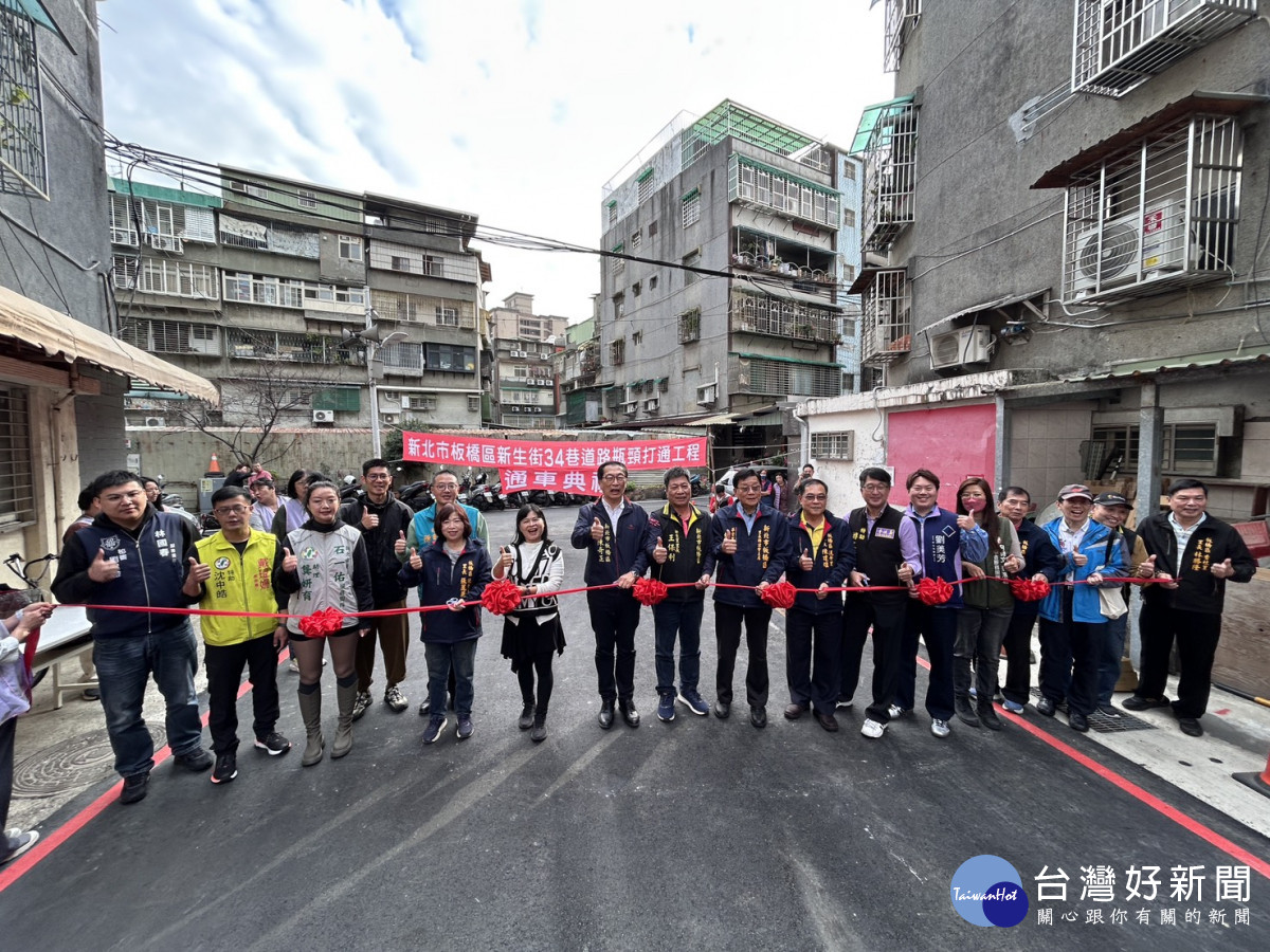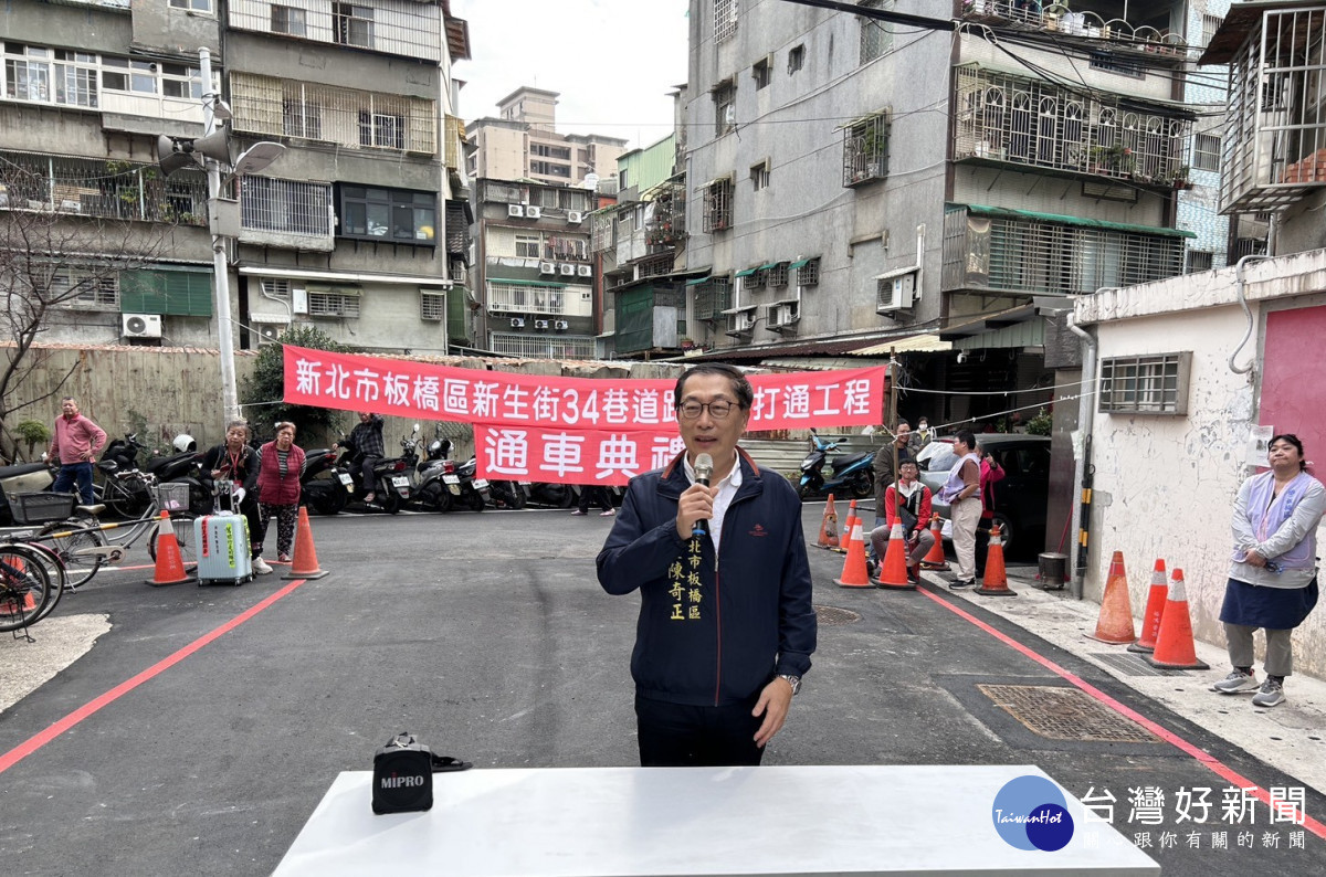 板橋區長陳奇正表示,新生街34巷原因設有台電變電箱,導致車輛無法通行至金華街。經新生里王保利里長協助協調地主,並由工務局新建工程處協議價購取得土地,遷移台電變電箱,公所順利完成道路瓶頸打通。該路段規劃道路寬度為7公尺,採車輛雙向通行配置,並增設單側排水溝,有效提升區域交通便利性。也呼籲用路人行經該路段時減速慢行,於路口注意禮讓行人,共同維護行車安全。