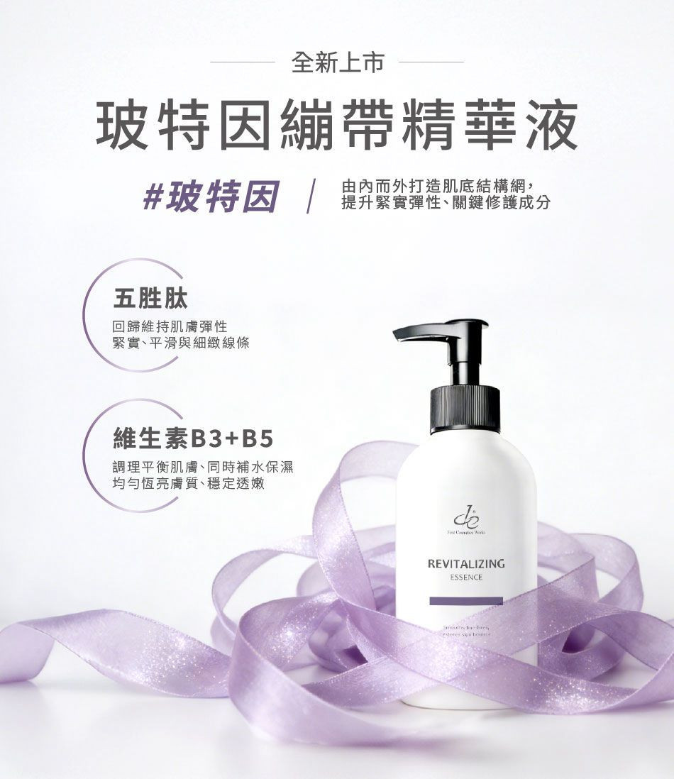 配方中選用高端保養市場廣受關注的成分「玻特因」,作為關鍵澎彈因子,並搭配大小分子玻尿酸鈉、菸鹼醯胺(維生素B3)、維生素原B5與五胜肽,讓肌膚在補水之餘,同步調理肌膚狀態,協助維持彈潤與自然光澤外觀。