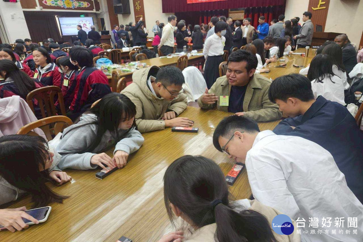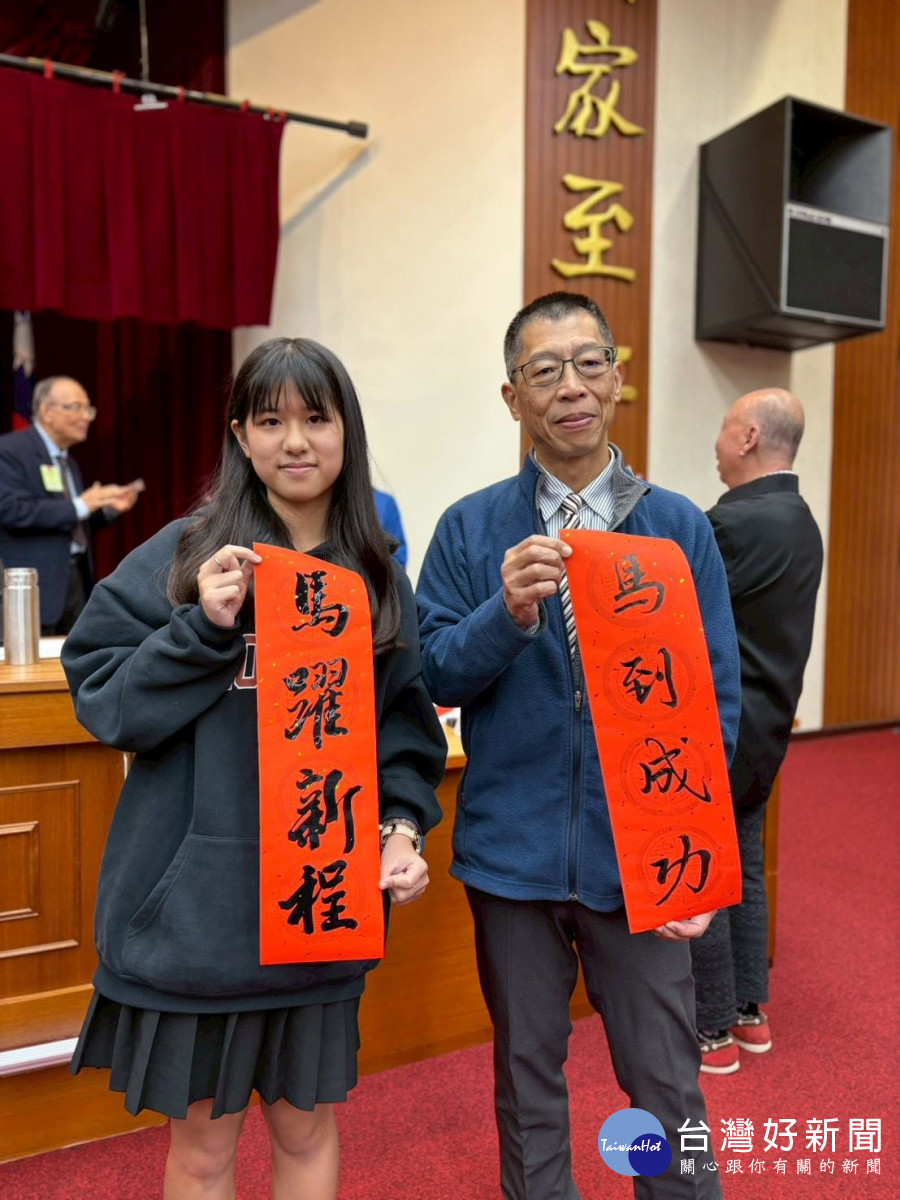 活動過程中,北門高中師生透過共同書寫春聯、分享台灣傳統過年文化與家庭價值觀,與各國貴賓展開深度互動。吳雨錡同學則代表全校學生以流利英文,向國際使節和外籍生介紹自家的家庭價值與農曆新年習俗的文化點滴,優秀的雙語表達實力獲得與會者稱許。