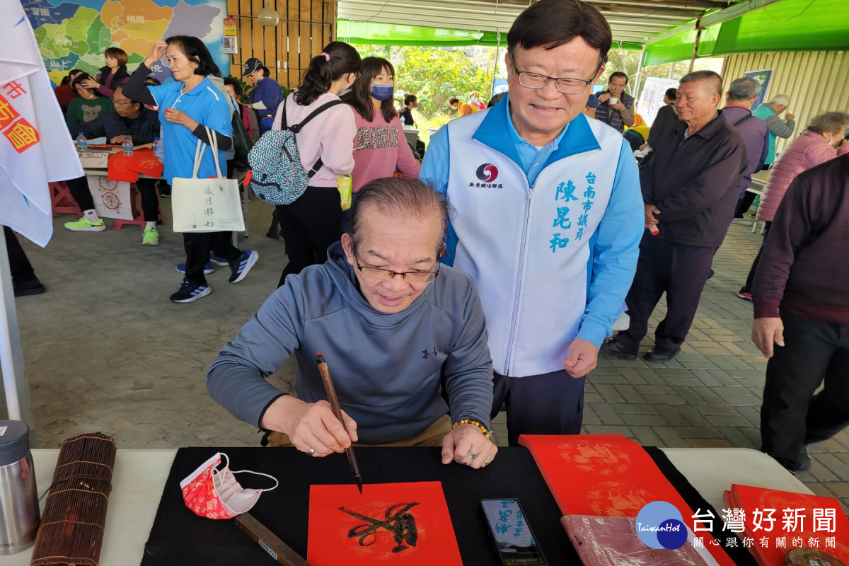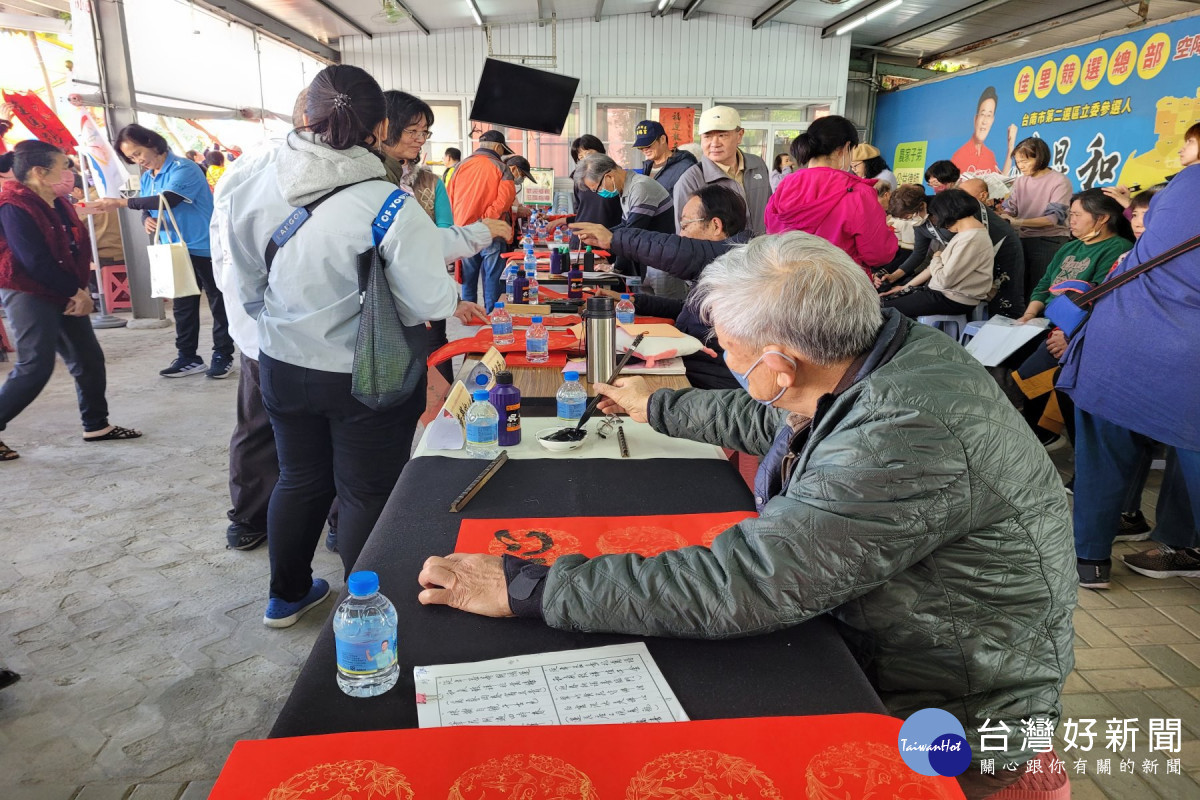 台南市昆和之友會結合陳昆和議員服務處等17個團體,7日在陳昆和議員服務處舉辦2026和你迎春納福-名家現場揮毫贈春聯活動,邀請曾遜祥大師等10位書法名家、2位學生及1位畫家參與,民眾紛紛排隊索取。陳中正理事長表示,此次迎春納福活動有6大亮點,內容豐富,民眾參與踴躍,祈願新的一年國泰民安、民生樂利。